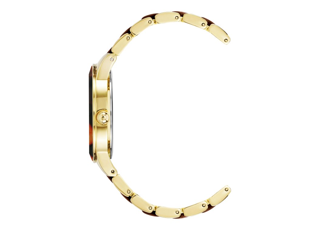 Model má dvojfarebný kovový ťah v kombinácii zlatej a tmavofialovej farbyktorá sa hodí kokrúhle zlaté puzdro a fialový ciferník. Kryštáliky na pozíciách indexu dodávajú hodinkám charakter šperku,minerálne sklo chráni ciferník pred poškriabaním a solárny kremenný stroj sa nabíja prirodzeným alebo umelým svetlom. Ideálna voľba pre ženy, ktoré hľadajú štýlový doplnok s ekologickým nádychom a výraznou osobnosťou.