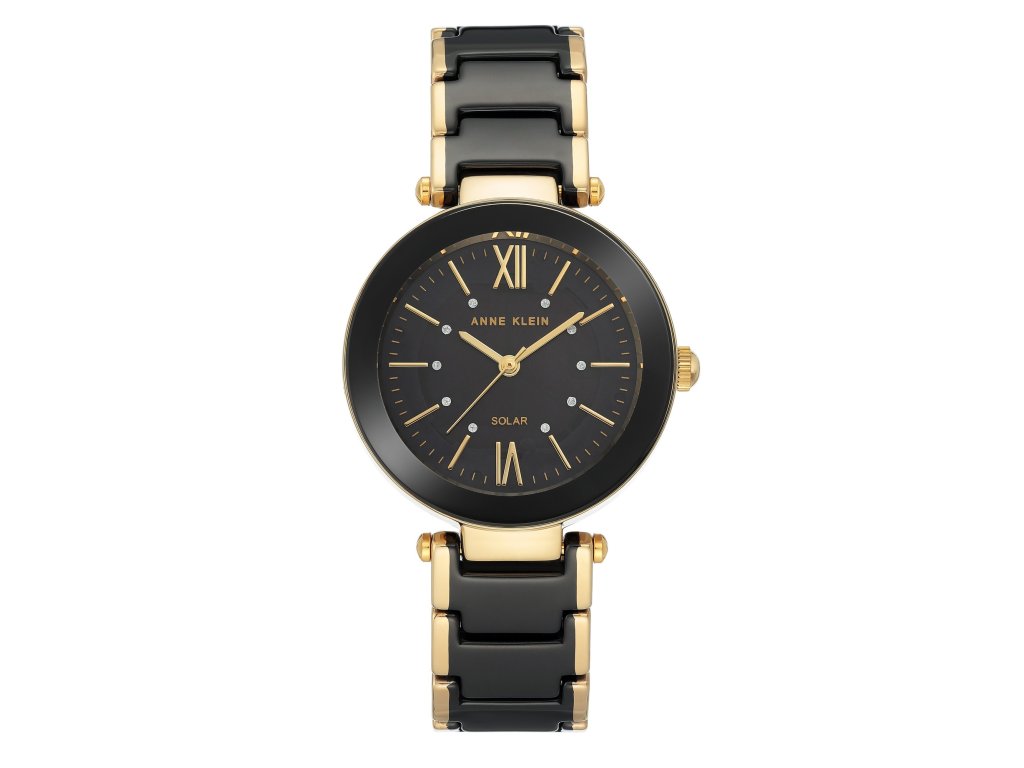 Štýlové hodinky Anne Klein prinášajú spojenie temnej elegancie, lesku a úspornej technológie.Čierny ciferník s krištáľovým povrchom vytvára výrazný kontrast s ružovo-zlatým puzdrom a solárne napájanie šetrí batérie aj životné prostredie.