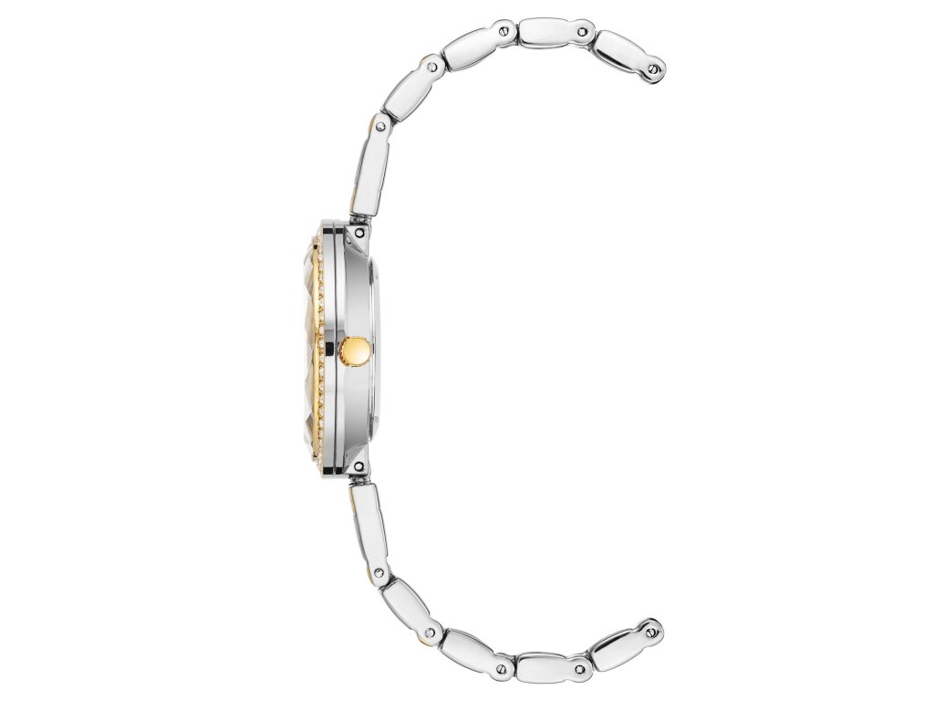 Model má dvojfarebný kovový ťah v kombinácii striebornej a zlatej farbyktorá sa hodí kokrúhle puzdro v zlatom odtieni a strieborný ciferník s kryštálmi. Dizajn je elegantný, jemne lesklý a zároveň praktický.Minerálne sklo chráni hodinky pred poškriabaním a presný Quartzový mechanizmus zabezpečuje bezchybnú prevádzku. Ideálna voľba pre ženy, ktoré chcú spojiť štýl, funkčnosť a nenápadný lesk.