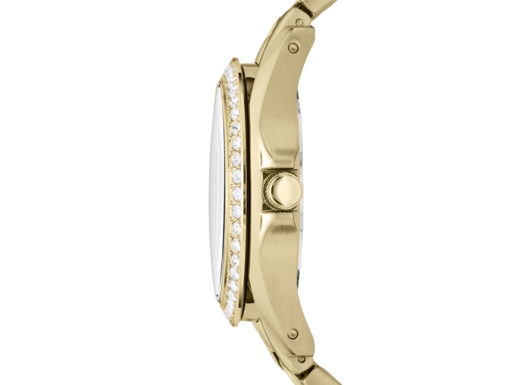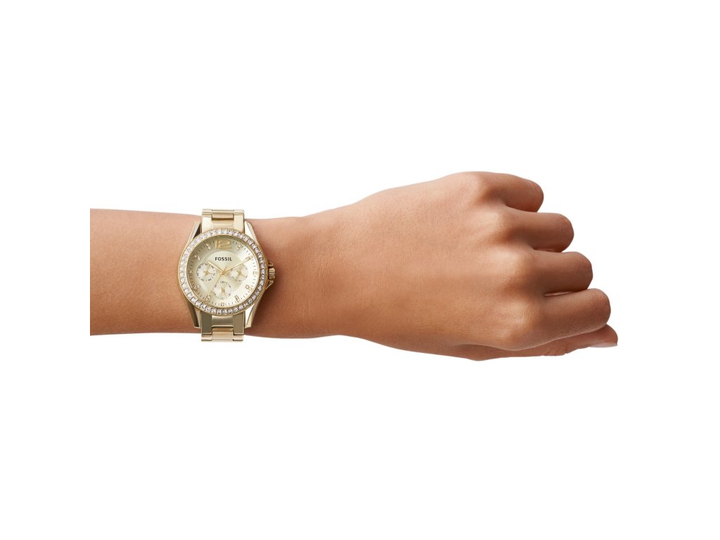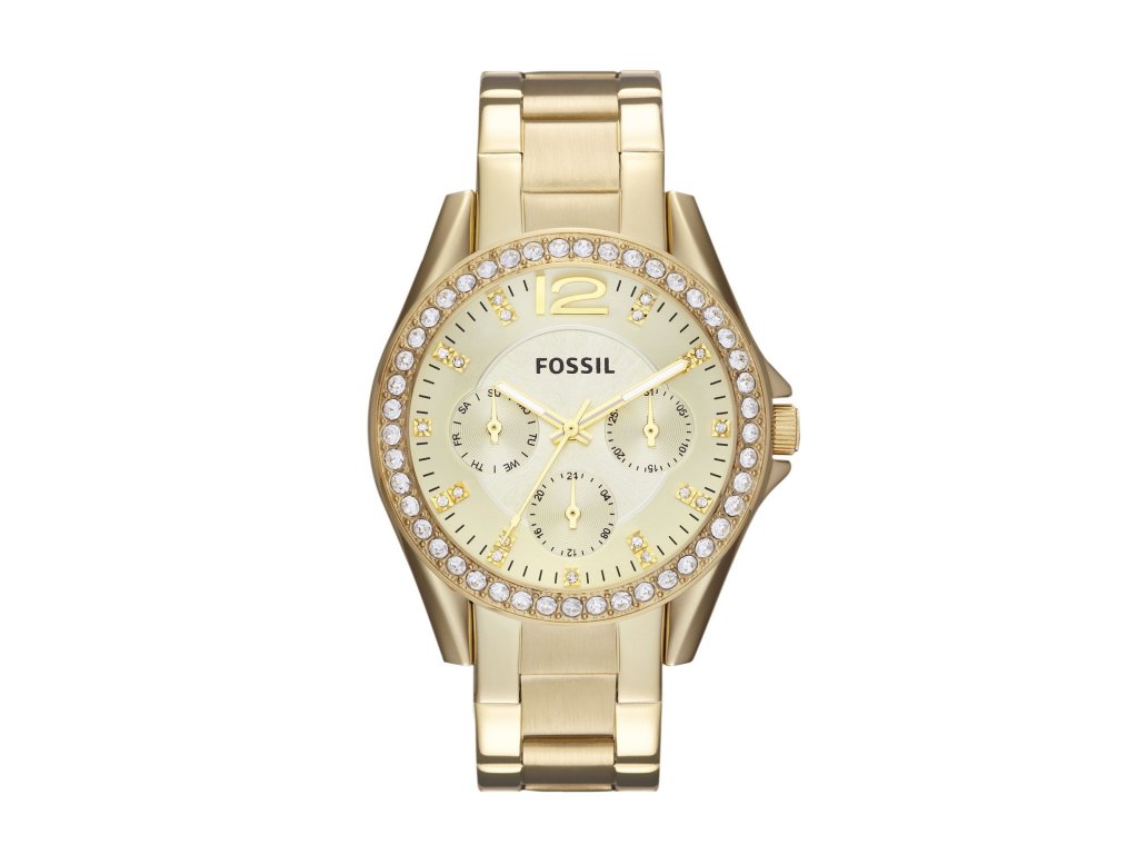 S dámskymi hodinkami Riley od spoločnosti Fossil získate aj očarujúci šperk na zápästie. Zlatá farba v kombinácii s jemnými kryštálmi vytváraharmonická symbióza medzi módnym vzhľadom a sofistikovanosťouktoré by si žiadna žena nemala nechať ujsť.