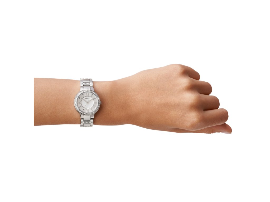 S dámskymi hodinkami Virginia od spoločnosti Fossil môžete podčiarknuť svoju krásu a doladiť svoj outfit. Sú veľmi decentné a ich očarujúca strieborná farba v kombinácii s trblietavými kryštálmi a prepracovanými detailmi pôsobí veľmielegantné a vkusné.