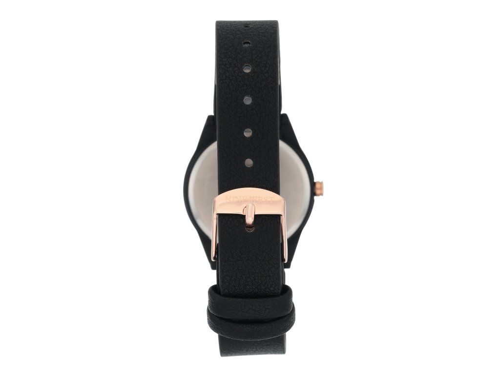 Hodinky poháňa kvalitný strojček Quartz a chráni ich minerálne sklo.Čierny kožený remienok pohodlne sedí na zápästí a zodpovedá okrúhlemu kovovému puzdru.