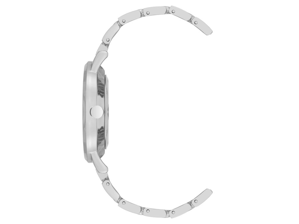 Strieborný ciferník so zladenými ručičkami a jemnými indexmi pôsobí elegantne a čisto. Celok podčiarkuje atraktívny dizajn strojčeka, ktorý upúta pozornosť a dodáva mu na originalite.