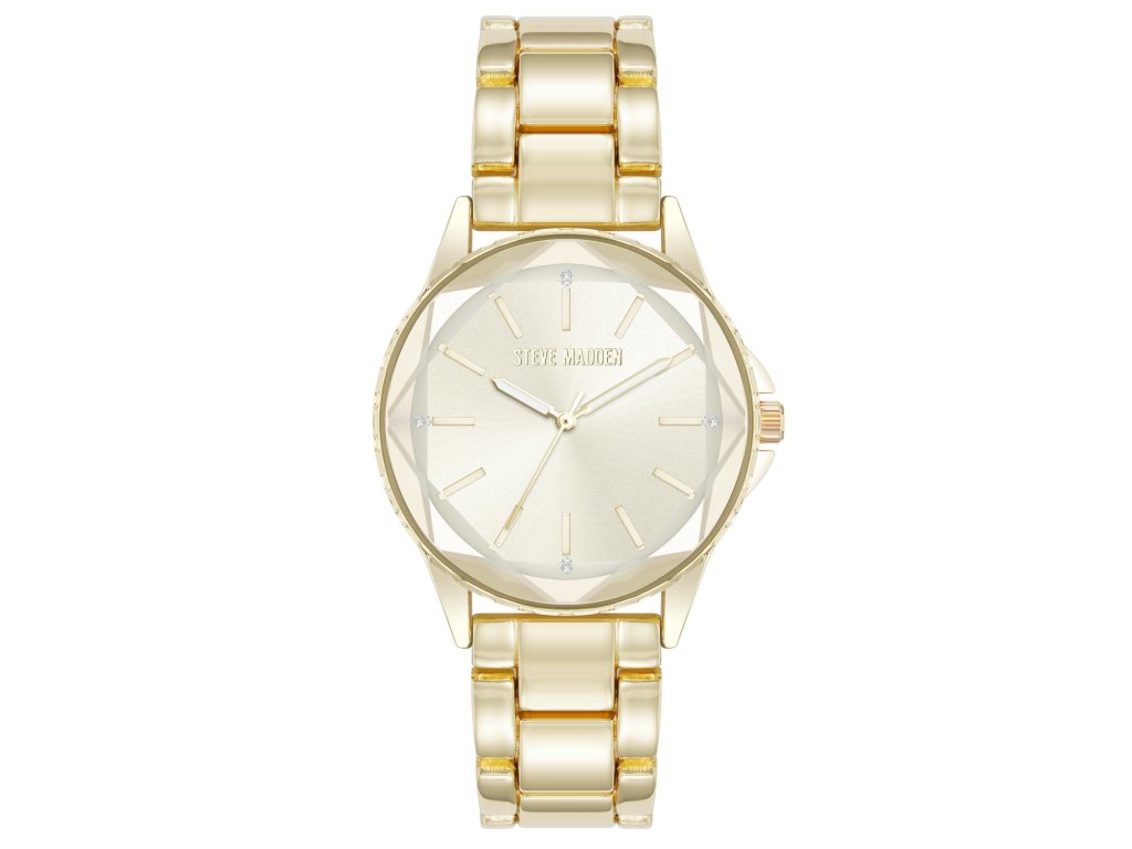Dámske hodinky od spoločnosti Steve Madden v sebe spájajú modernú eleganciu, čistú jednoduchosť a nadčasový štýl. Celkový zlatý dizajn pôsobí harmonicky a zároveň výrazne, takže hodinky krásne doplnia každodenné oblečenie aj slávnostné príležitosti.