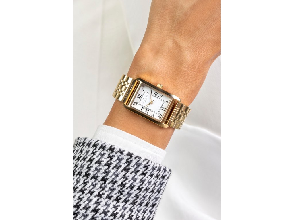 Biely ciferník v tvare štvorca podčiarkuje minimalistický charakter hodiniek a zodpovedáoceľový ťah v zlatej farbe.Puzdro tiež v zlatom tóne dotvára kompletný a elegantný vzhľad, ktorý je vhodný na každodenné nosenie aj formálnejšie príležitosti. Minerálne sklíčko chráni ciferník, aby si hodinky dlho zachovali svoj pôvab. Tento model je ideálny pre ženy, ktoré uprednostňujú jednoduchý, ale zároveň rafinovaný štýl.