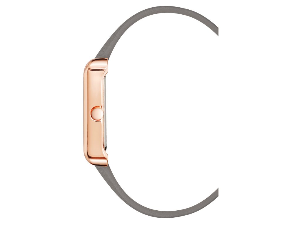 Hodinky poháňa kvalitný strojček Quartz a chráni ich minerálne sklo.Kožený remienok v sivej farbe dokonale ladí s prvkami z ružového zlata a zaručuje pohodlné nosenie počas celého dňa.