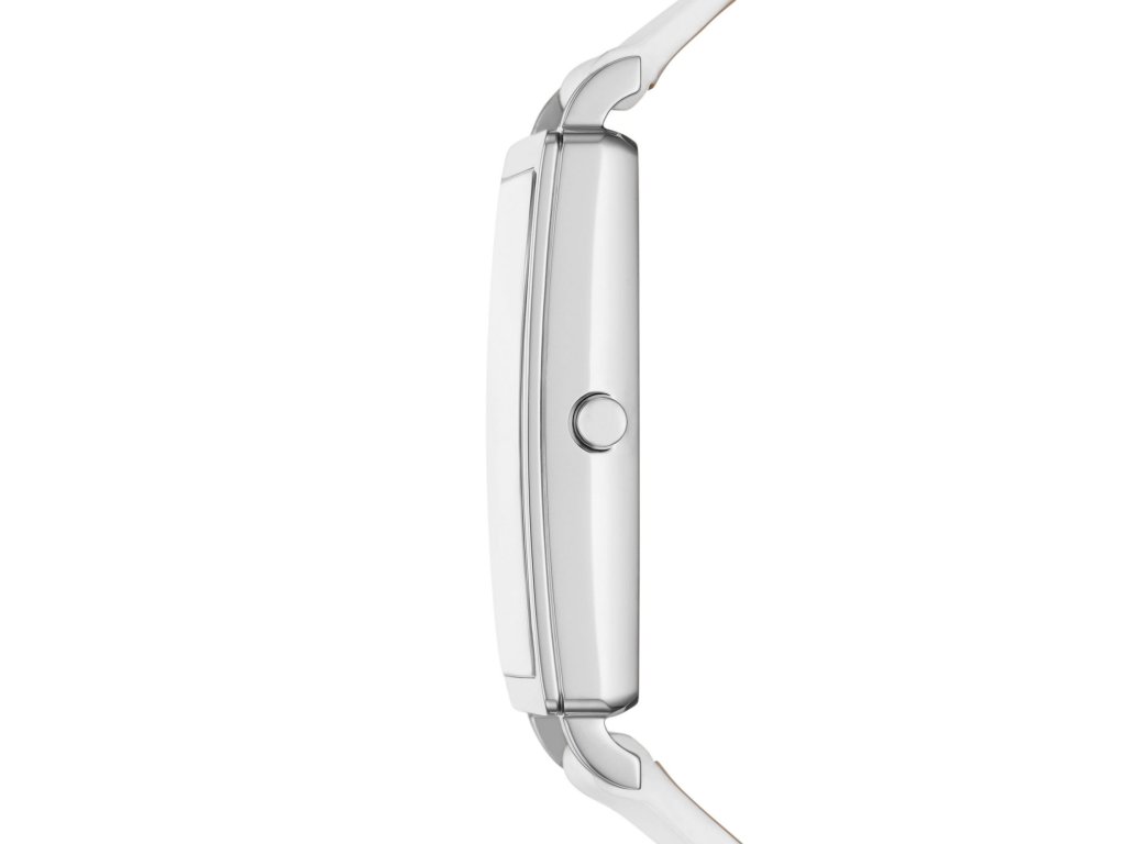 Štvorcový ciferník s perleťou a jemnými pozlátenými ručičkami a indexmi stelesňuje minimalistickú estetikučo je charakteristické pre značku Skagen. Oceľové puzdro dodáva hodinkám sofistikovaný vzhľad, zatiaľ čo biely kožený remienok poskytuje maximálne pohodlie a ľahkosť.