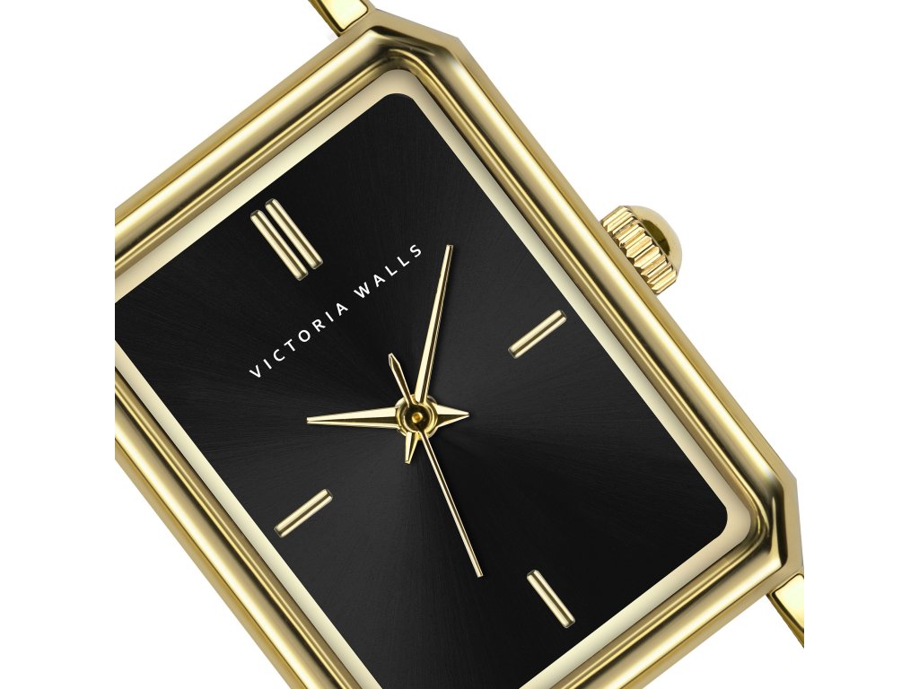 Elegantný kontrast v modernom poňatí. Dámske hodinky Victoria Walls VDZ-4214GQ zaujmú kombináciou čierneho ciferníka a zlatej povrchovej úpravy. Hranaté puzdro dodáva modelu elegantný vzhľad a podčiarkuje jeho módny charakter.