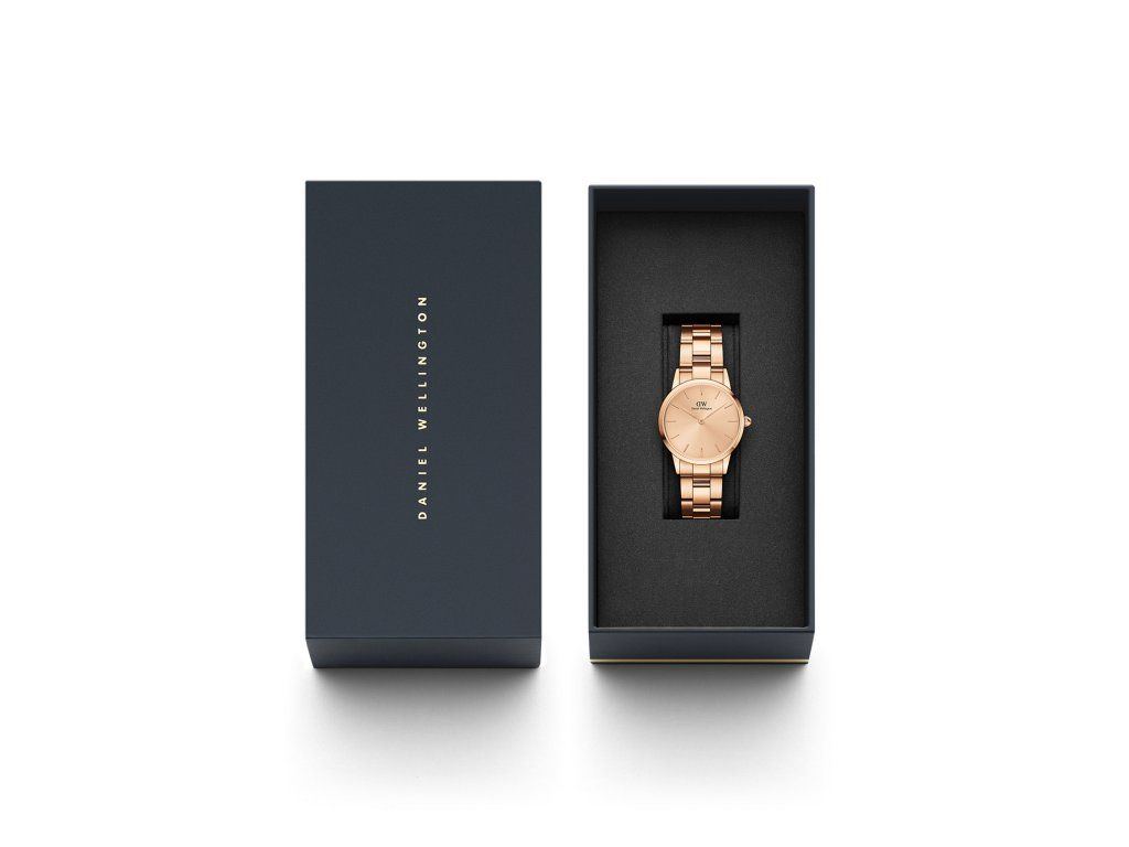 Dámske náramkové hodinky v ružovom zlate, ciferník s indexmi, kovový ťah
