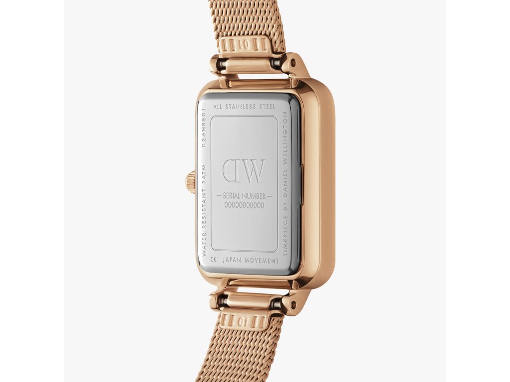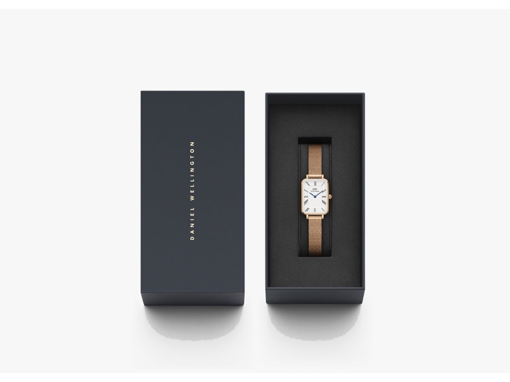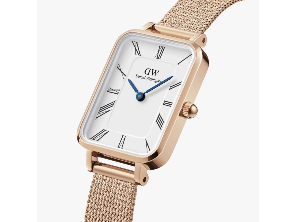 Dámske hodinky Quadro Roman Numerals Melrose od spoločnosti Daniel Wellington kombinujú elegantný vintage vzhľad s moderným minimalistickým dizajnom.