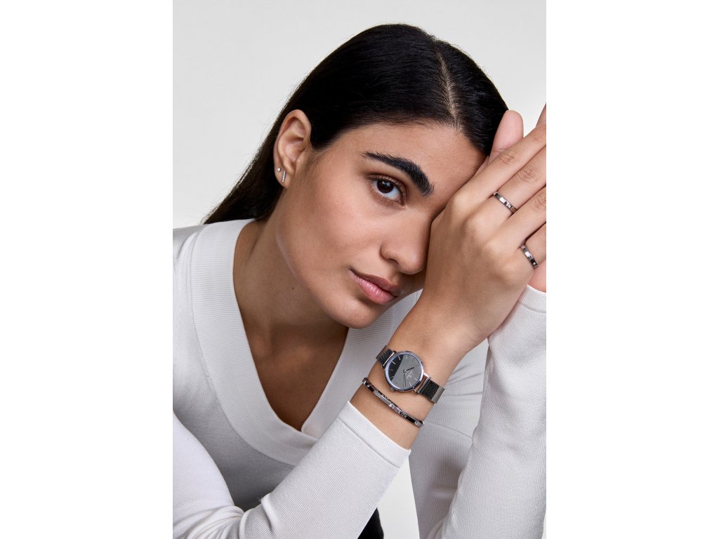 Minimalistický ciferník, elegantné strieborné puzdro a nový sieťový strojček s lešteným povrchom zaručujú harmóniu detailov a celistvý vizuálny dojem.Hodinky si zachovávajú decentný, ale moderný vzhľad a prispôsobia sa akémukoľvek štýlu.