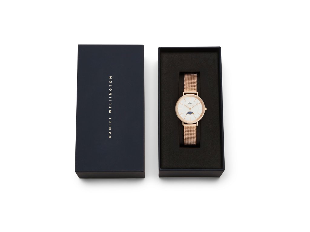 Hodinky, ktoré držiadokonale spája eleganciu, nadčasovosť a jednu z najstarších hodinárskych komplikácií, toto je model dámskych hodiniek Petite Moonphase značky Daniel Wellington.