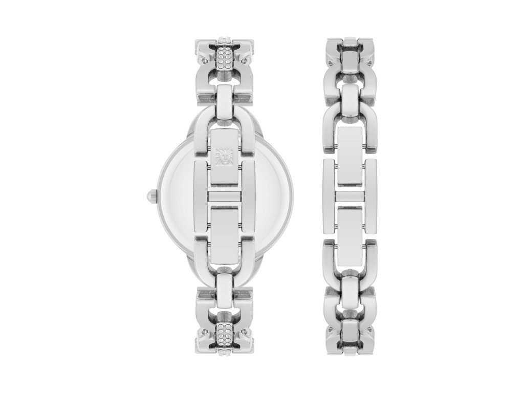 Táto dámska súprava od značky Anne Klein je jemná, elegantná a nadčasová.Perleťový ciferník s kryštálmi dodáva hodinkám jemný lesk, zatiaľ čo zodpovedajúci náramok umocňuje celkový dojem štýlového šperku.