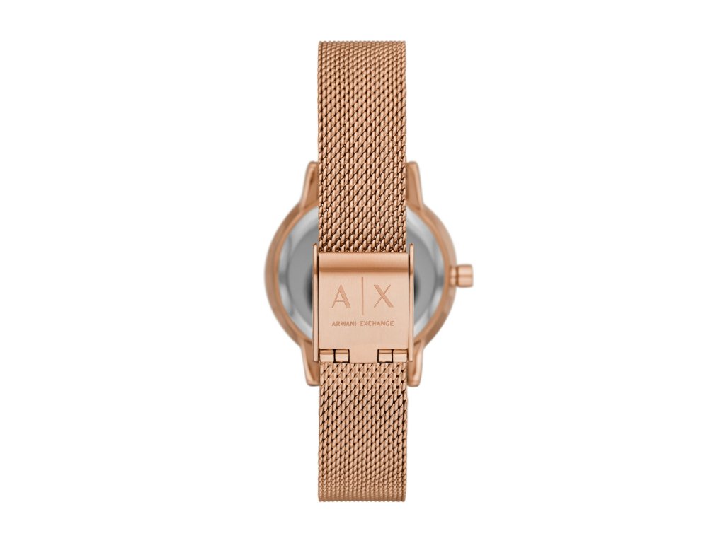 Lola AX7121 je vybavenáoceľový remienok v ružovom zlate, okrúhle puzdro v ružovom zlate a strieborný ciferník s priemerom 28 mm. Kryštály lemujúce ciferník dodávajú hodinkám jemný lesk a ženský pôvab. Celok dopĺňa minerálne sklo a spoľahlivý strojček Quartz.
