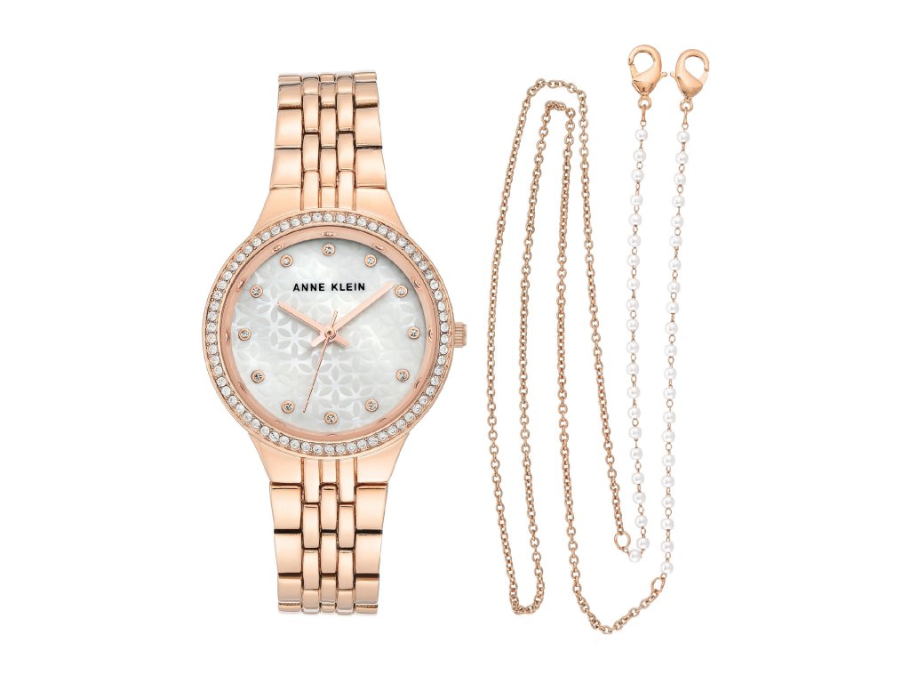 Obdarujte seba alebo svojich blízkych doplnkami, ktoré sa hodia na každú príležitosť. Hodinky a retiazka Anne Klein v zlatej farbe sú tou správnou voľbou. Kým hodinky upútajú pozornosť na vaše zápästie, jemná retiazka ozdobí váš dekolt a decentneupozorňuje na vaše silné stránky. Táto sofistikovaná kombinácia zaujme na rande, v spoločnosti aj na stretnutí.