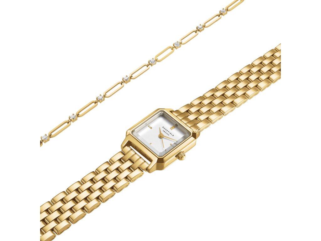 Darčeková súprava hodiniek a náramku Rosefield Boxelle + Round Crystals poteší všetky ženy, ktoré milujú eleganciu s jemným leskom.