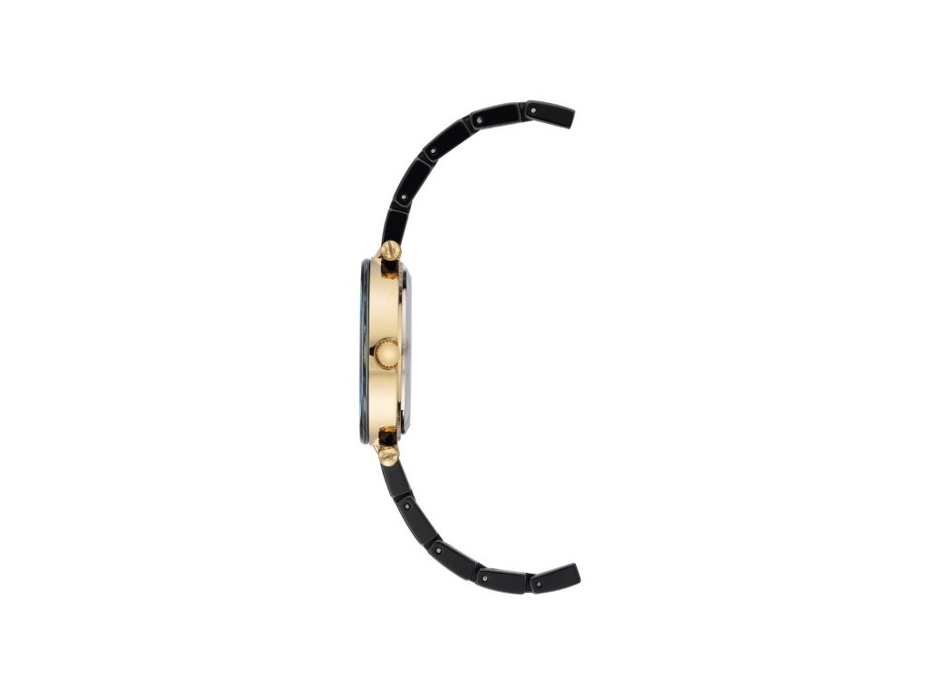 Minimalistické čierne hodinky so zlatými detailmi. Značka Anne Klein, pomenovaná po slávnej americkej vizionárke, prináša všetkým ženám možnosť vyjadriť sa niečím tak praktickým, ako sú hodinky. Lesklý čierny ciferník s bodovými indexmi dopĺňa diamant. Celok dopĺňa čierny keramický remienok. Hodinky chráni minerálne sklíčko a pozlátené puzdro s rozmermi 28 mm. O jednoduché zapínanie sa stará klenotnícka spona.