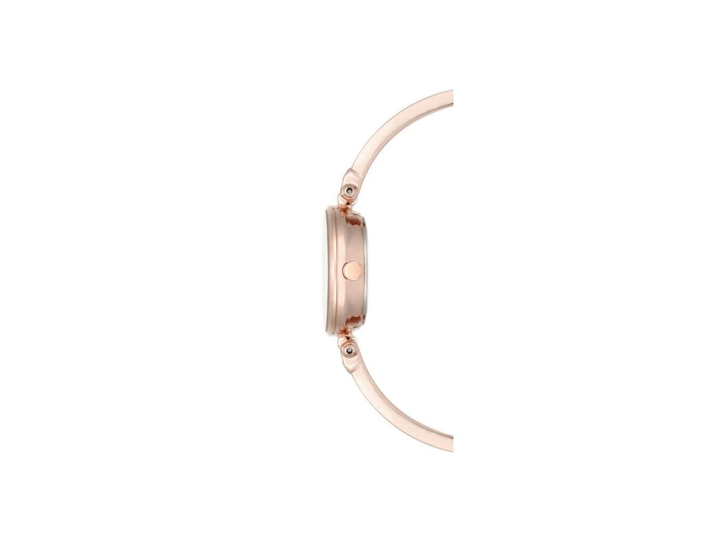 Elegantné hodinky s detailmi z ružového zlata a bielym smaltovaným remienkom. Značka Anne Klein, pomenovaná po slávnej americkej vizionárke, prináša všetkým ženám možnosť vyjadriť sa niečím tak praktickým, ako sú hodinky. Okrúhly biely ciferník zdobia bodové indexy a drobný diamant. Celok dopĺňa 28 mm puzdro z ružového zlata a biely remienok zakončený šperkárskou sponou. Ochranu zabezpečuje vysoko odolné minerálne sklíčko.