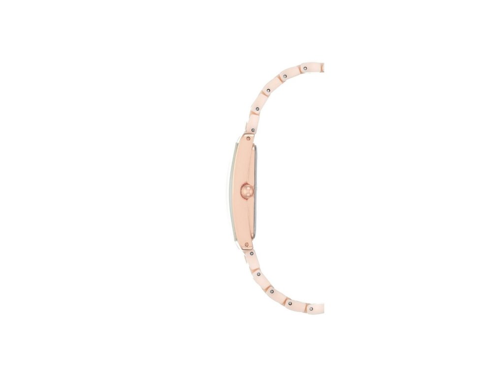 Slušné ružové hodinky so štvorcovým ciferníkom a keramickým remienkom. Značka Anne Klein, pomenovaná po slávnej americkej vizionárke, prináša všetkým ženám možnosť vyjadriť sa niečím tak praktickým, ako sú hodinky. Perleťový ciferník s paličkovými indexmi je chránený minerálnym sklíčkom a puzdrom z ružového zlata s rozmermi 28 mm x 35 mm. Celok dopĺňa keramický remienok s detailmi z ružového zlata a klenotníckou sponou.