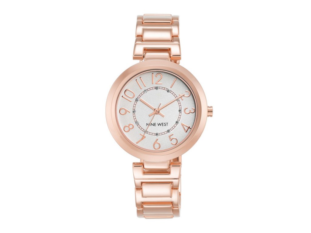 Dámske hodinky s ciferníkom a strojčekom vo farbe ružového zlata.