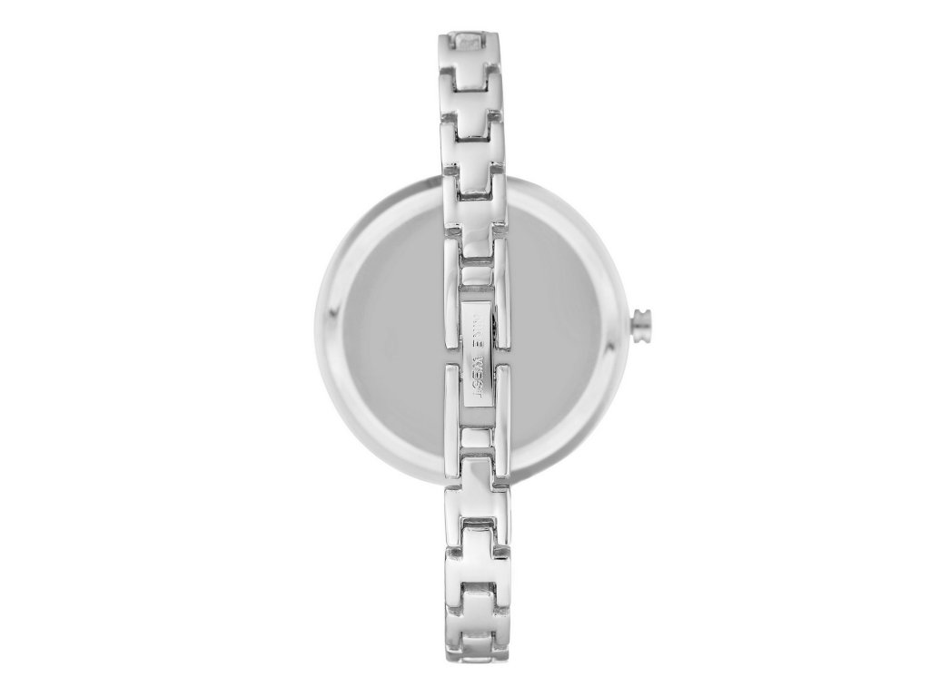Hodinky so strieborným ciferníkom a výrazne úzkym náramkom.