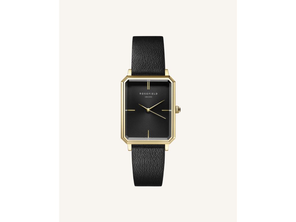 Elegantné hodinky na čiernom koženom remienku so zlatým puzdrom