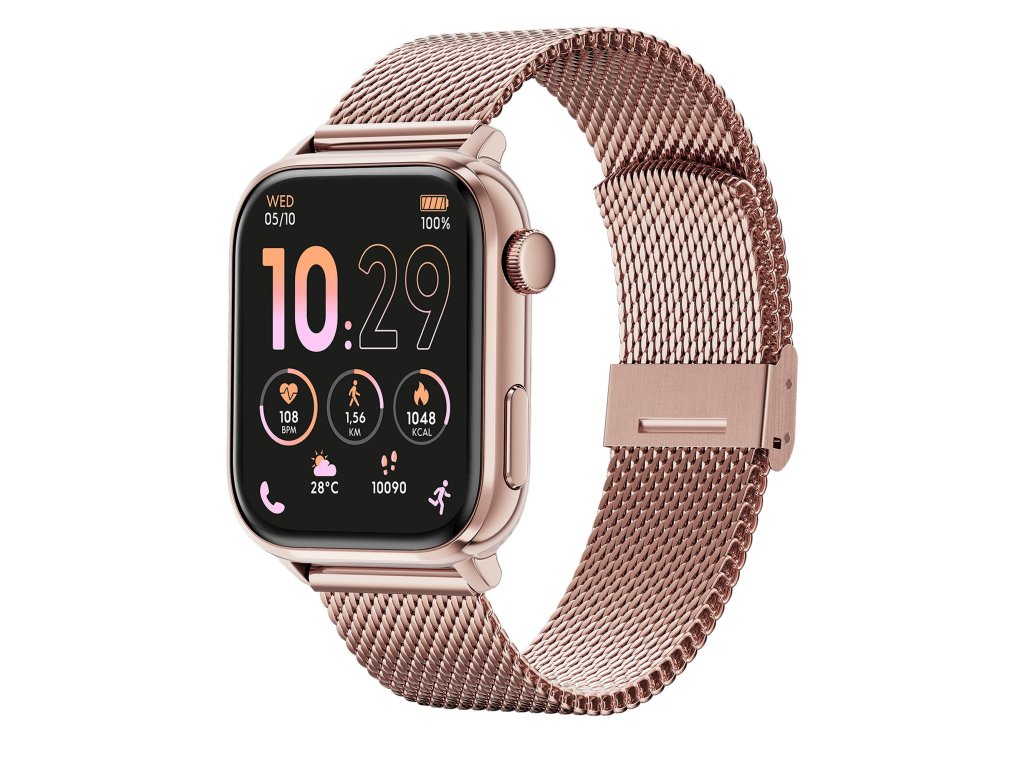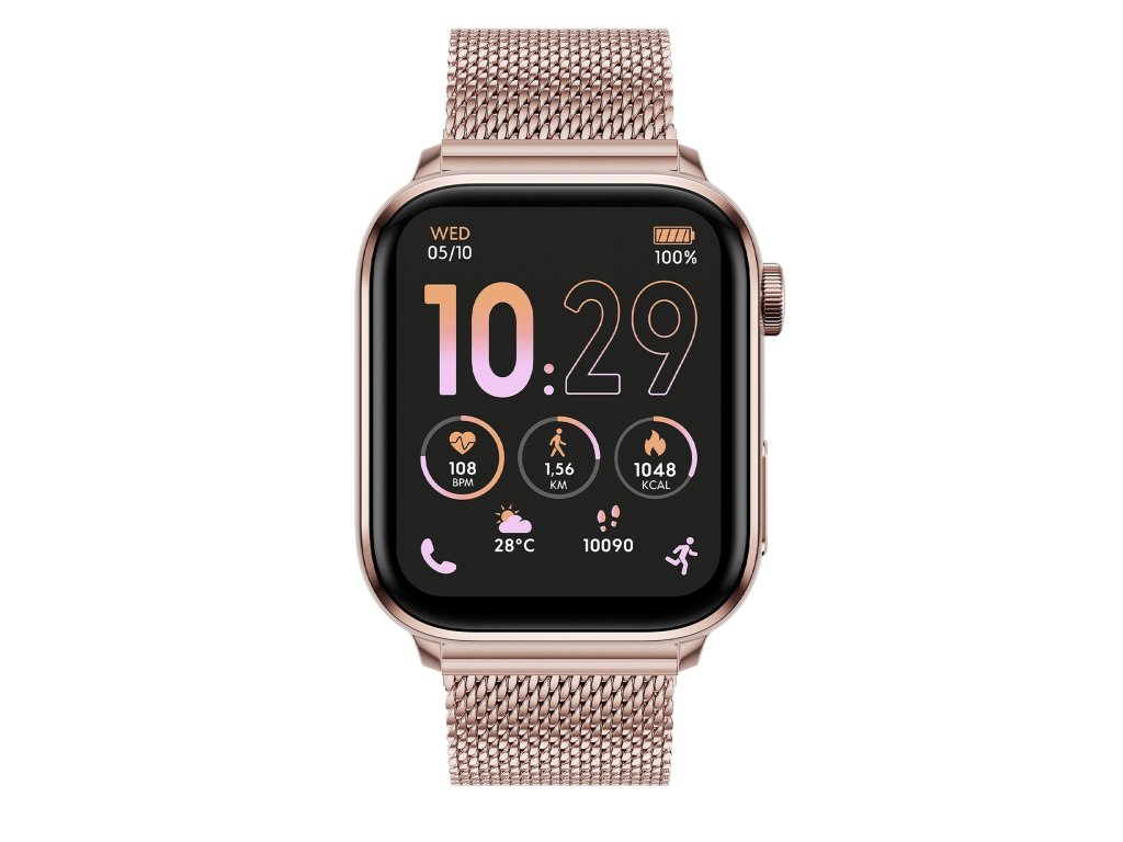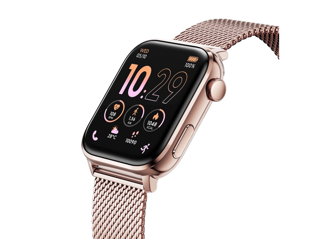Ťahanie z oceľového pletiva v kombinácii spuzdro zo zliatiny zinku v ružovom zlate dodáva hodinkám sofistikovaný vzhľad. Veľký 1,78" displej AMOLED s rozlíšením 366 × 488 px ponúka perfektnú čitateľnosť a detailné zobrazenie, zatiaľ čo vodotesnosť IP68 zaručuje odolnosť aj pri športe alebo bežnom nosení.