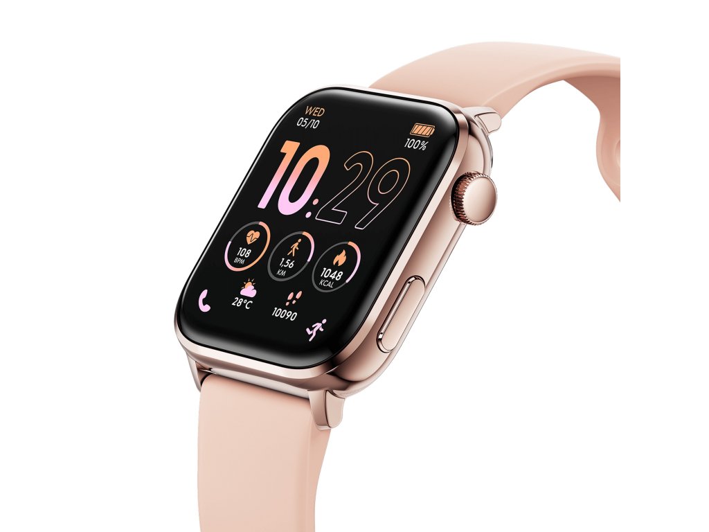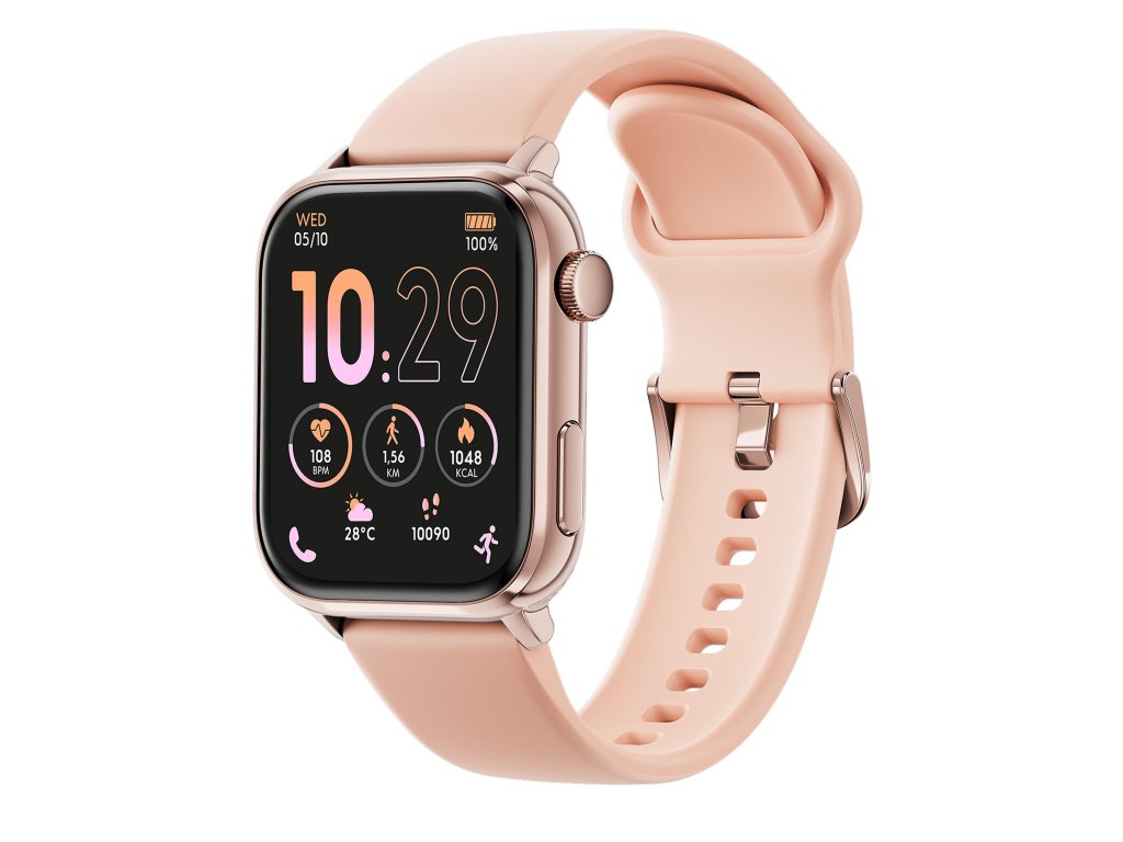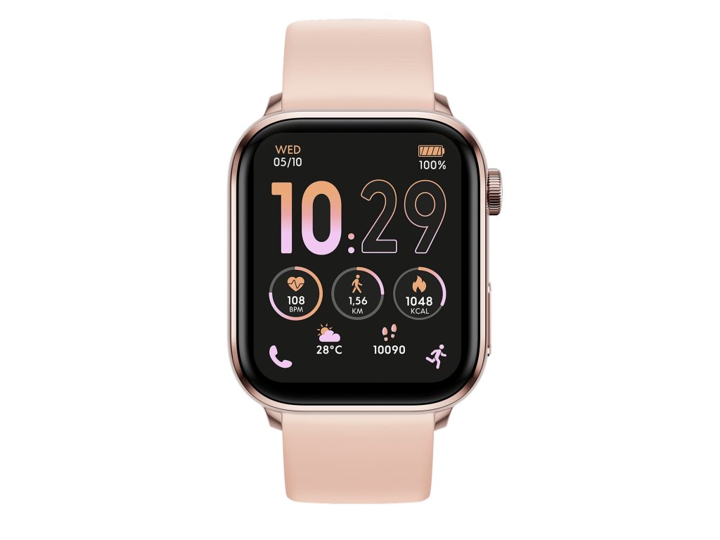 Ružový silikónový remienok v kombinácii s puzdrom zo zliatiny zinku v ružovom zlate je jemný a sofistikovaný. Veľký 1,78" displej AMOLED s vysokým rozlíšením (366 × 488 px) zaručuje dokonalú čitateľnosť, zatiaľ čo vodotesnosť IP68 chráni hodinky pri športe aj každodennom nosení.