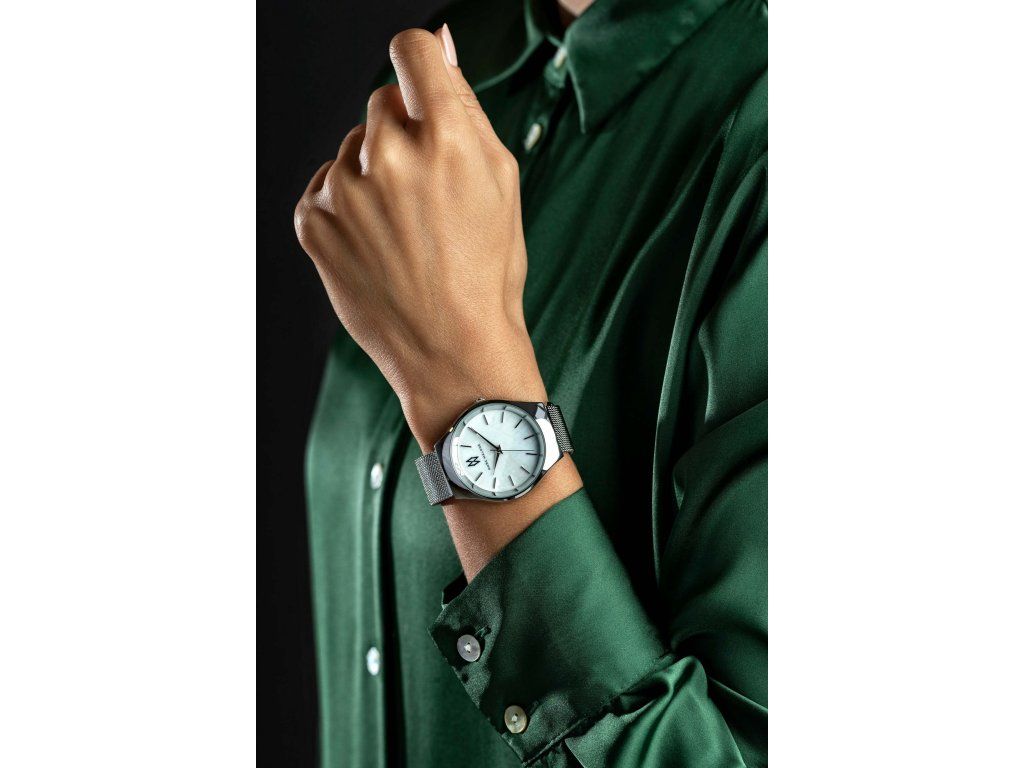 Dámske hodinky Marc Malone Ann Silver Mesh s kovovým štruktúrovaným remienkom v striebornej farbe vás zaujmú nielen svojím ciferníkom s priemerom 38 mm, ktorý má štruktúru strieborného kameňa s indexmi v podobe strieborných prúžkov. Ciferník je chránený odolným minerálnym sklíčkom. Remienok je široký 18 mm, pohodlne nastaviteľný vďaka pracke striebornej farby.