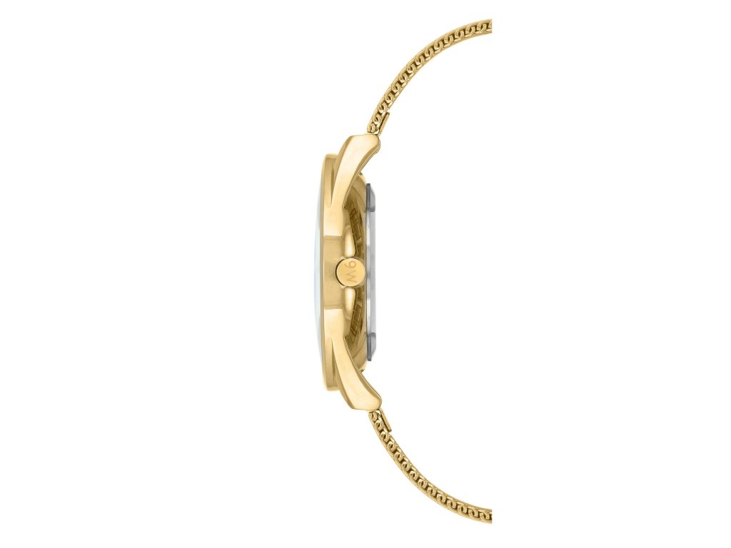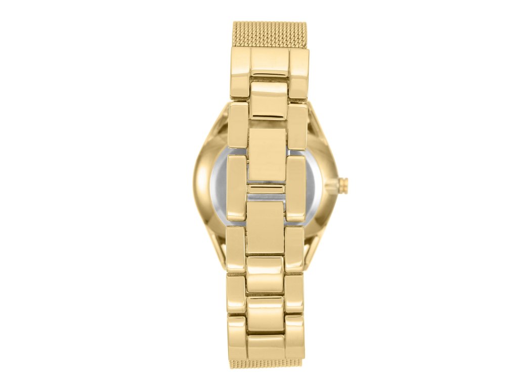 Dámske jednofarebné zlaté hodinky s okrúhlym ciferníkom v matnom vyhotovení, ktorý dopĺňajú líniové indexy v zlatej farbe. Perforovaný remienok robí z hodiniek veľmi elegantný kúsok.