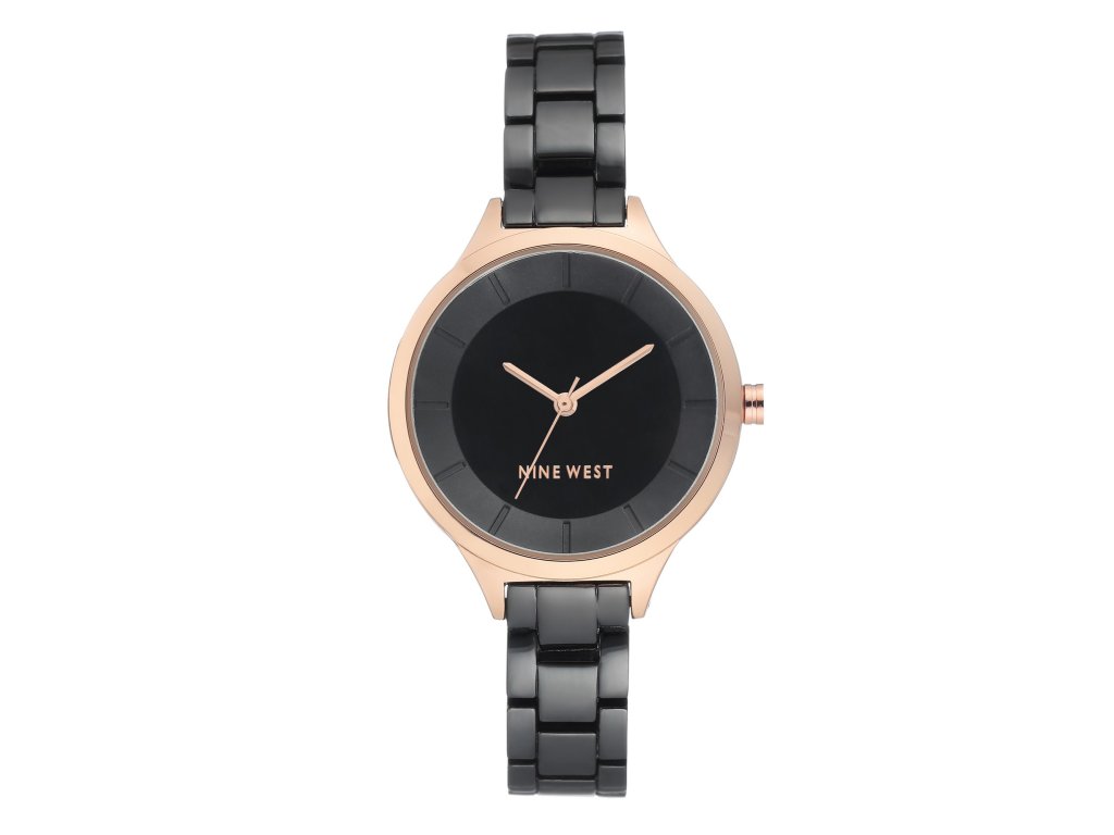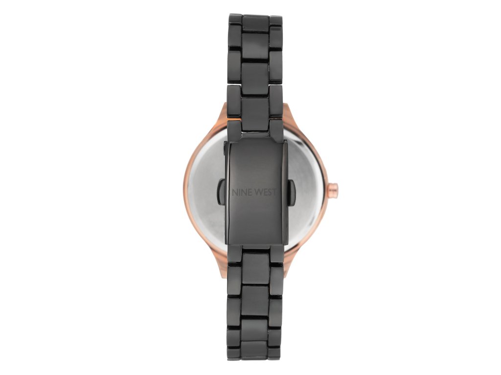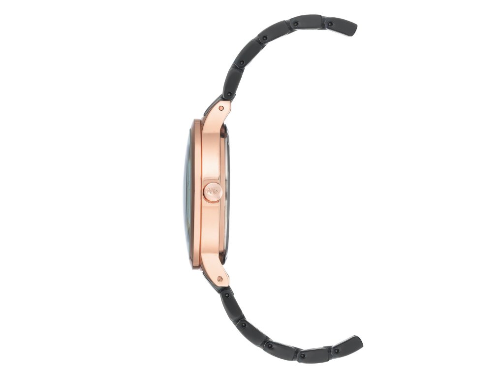 Dámske hodinky, ktoré kombinujú tmavosivý kovový remienok s ciferníkom z ružového zlata. Minimalistický dizajn, ktorý necháva vyniknúť tvar hodiniek bez zbytočných doplnkov.
