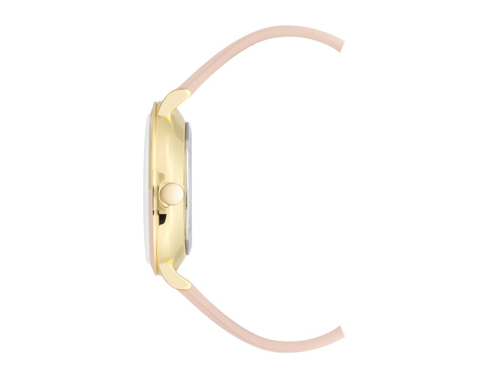 Dámske hodinky s nezvyčajným dvojfarebným puzdrom a ciferníkom, ktoré kombinujú púdrovo ružovú a zlatú farbu. Ciferník má zlaté čiarové indexy. Púdrovo ružový koženkový remienok je nastaviteľný, aby dokonale padol na každé zápästie.