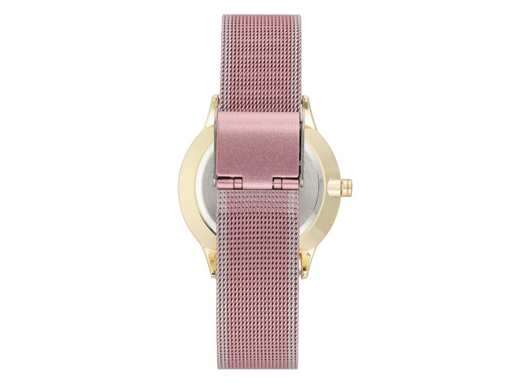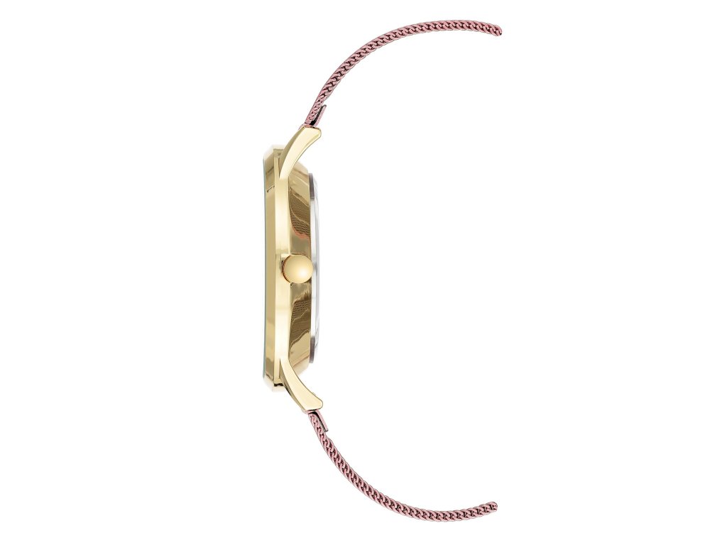 Dámske hodinky, ktoré kombinujú zlato a ružové zlato. Jemný ružový ciferník má zlaté čiarové indexy. Perforovaný remienok z ružového zlata robí z hodiniek veľmi elegantný a luxusný kúsok.