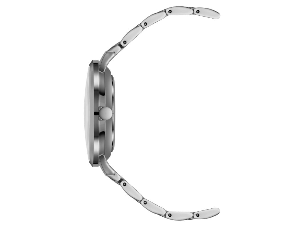 Tieto elegantné tmavosivé dámske hodinky zaujmú štruktúrovaným ciferníkom. Svetlý ciferník s líniovými indexmi v tmavosivej farbe.