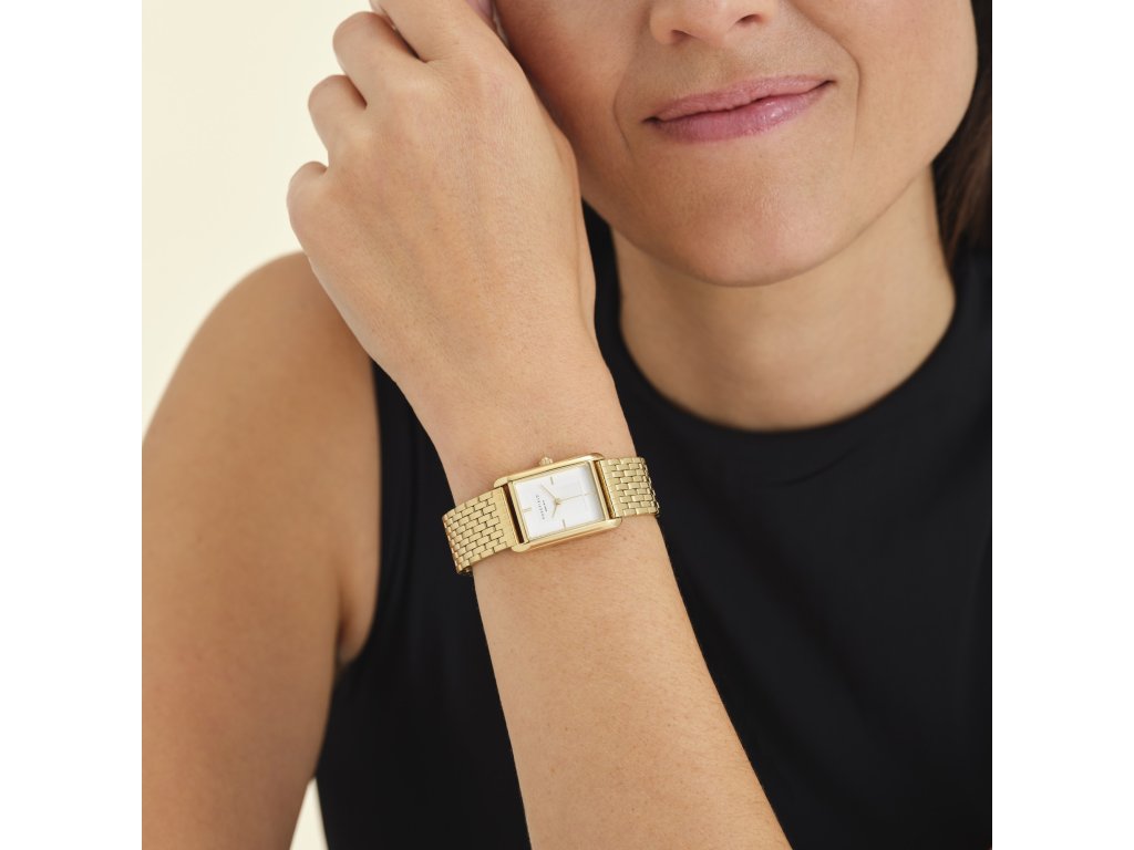 Obdĺžnikové puzdro dodáva hodinkám nádych sofistikovanosti, zatiaľ čo minimalistický dizajn ciferníka im dodáva moderný nádych. Miniatúrne články oceľového strojčeka pôsobia veľmi žensky a zabezpečujú, že hodinky pôsobia na zápästí veľmi ženskyvyzerajú skvele, či už si ich oblečiete na večierok, alebo k jednoduchému oblečeniu z džínsov a trička.