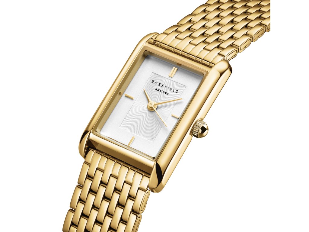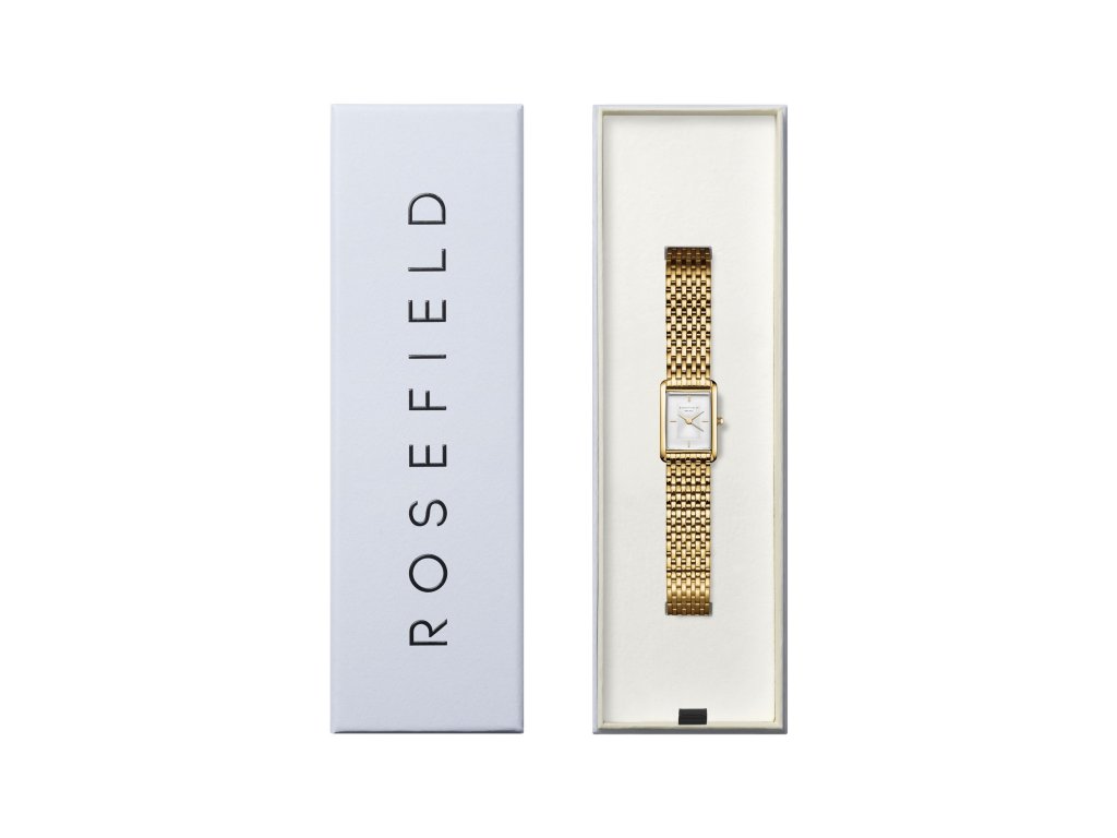 Ikonickéhodinky pre milovníkov čistého dizajnu a elegantného minimalizmu, je to model dámskych hodiniek Heirloom od spoločnosti Rosefield, ktorý kombinujeatraktívne štvorcové puzdro a štýlové ťahadlo. Vďaka farebnej kombinácii zlatej a bielej farby sú tiež veľminadčasový doplnok.