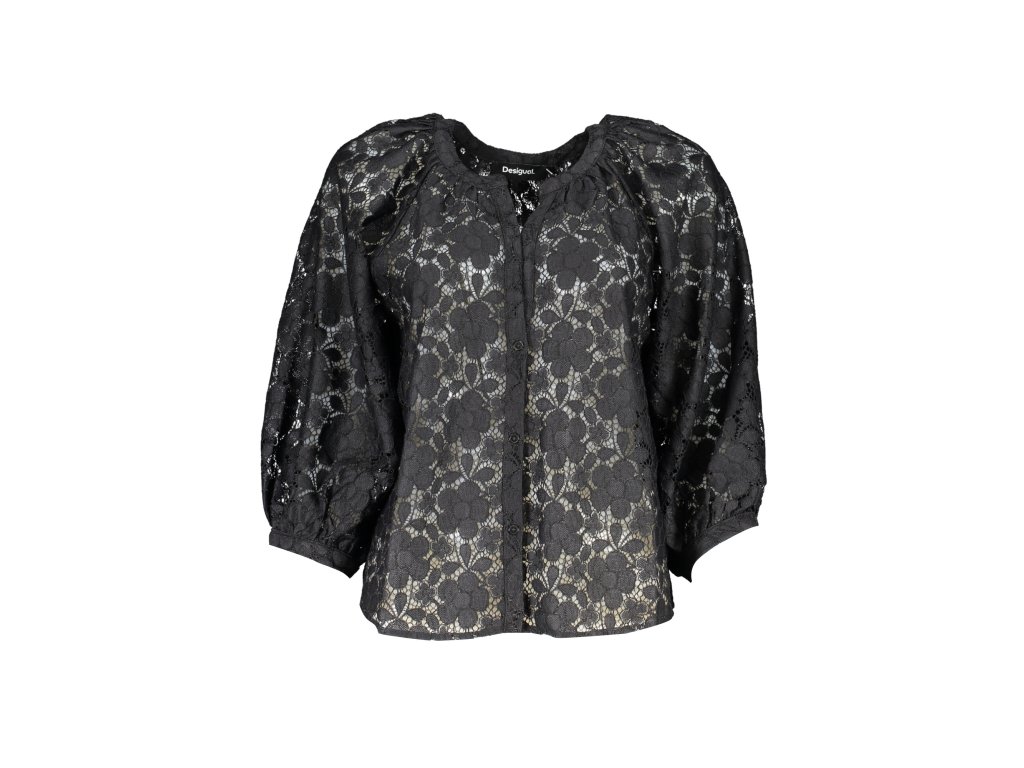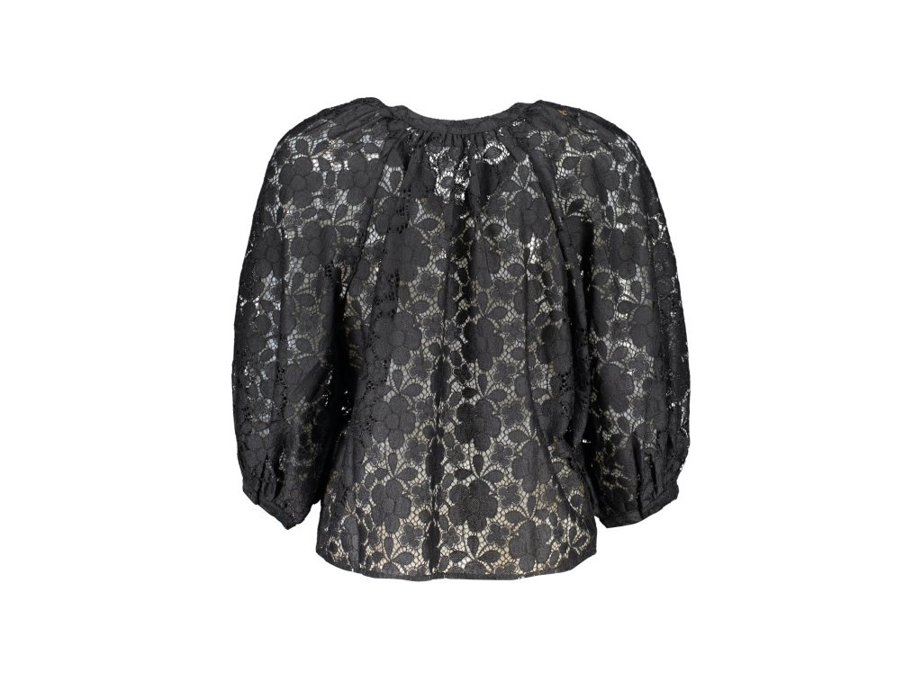 Detaily na blúzke sú v úchvatnom kontraste, vďaka čomu pôsobí ešte pútavejšie. Na prednej strane sa nachádzajú jemné gombíky, ktoré okrem praktickosti dodávajú retro šarm. Logo značky, jemne umiestnené a nevtieravé, potvrdzuje autenticitu a kvalitu tejto kreácie.