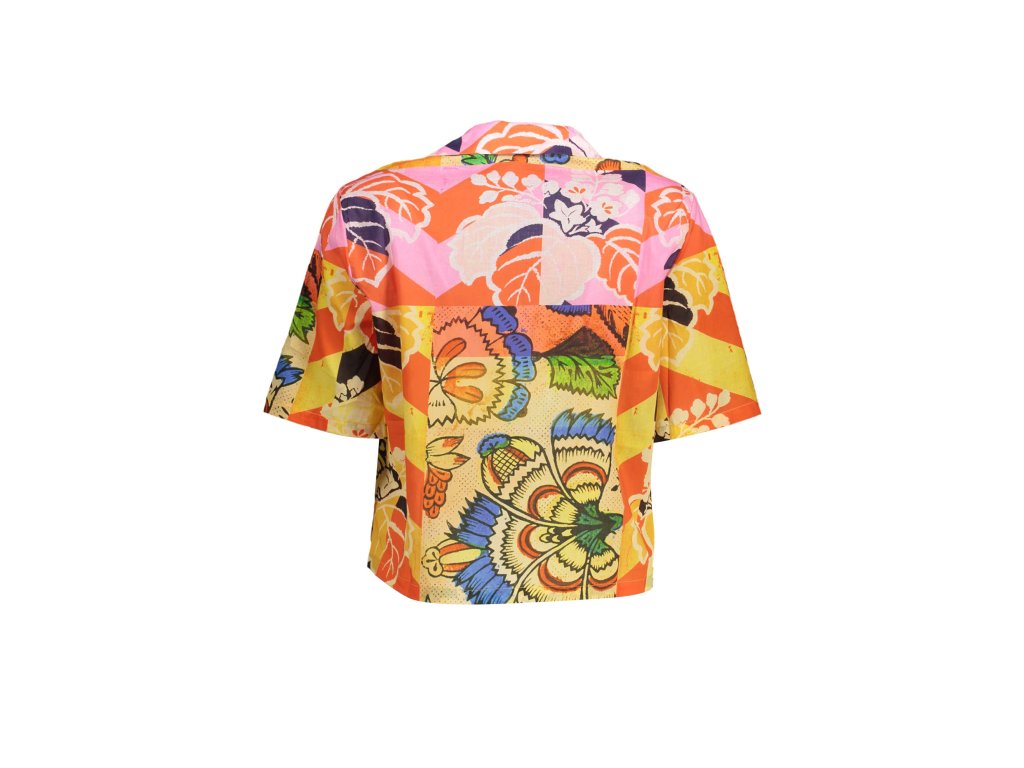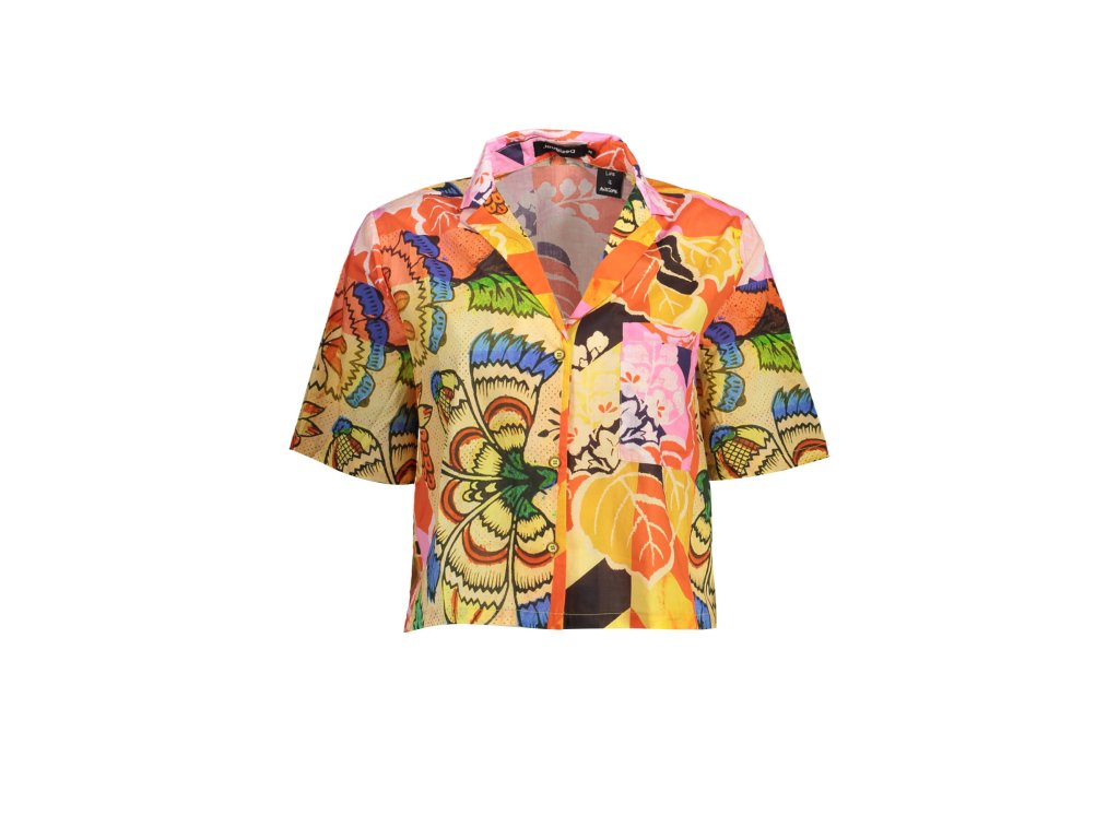 Táto štýlová dámska košeľa s krátkymi rukávmi predstavuje esenciu jarného štýlu a pohodlia. 🤩 Navrhnutá s hlbokým výstrihom do "V", ponúka moderný vzhľad, ktorý je ideálny pre akúkoľvek príležitosť. Košeľa je ozdobená fascinujúcou a pestrou potlačou plnou originálnych vzorov, ktoré pritiahnu pohľad svojou jedinečnosťou a kreativitou. 🌺🦋