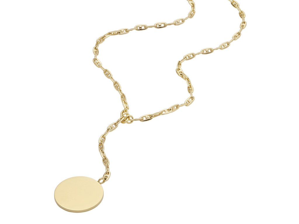 Dámsky náhrdelník s jemným okrúhlym príveskom od spoločnosti Fossil predstavuje kombináciu jednoduchej elegancie a moderného ženského štýlu.Pozlátený povrch a čisté línie vytvorte jemný, ale pútavý doplnok, ktorý podčiarkne prirodzený pôvab nositeľky. Ideálne pre ženy, ktoré milujú detaily, ktoré pôsobia ležérne a nadčasovo.