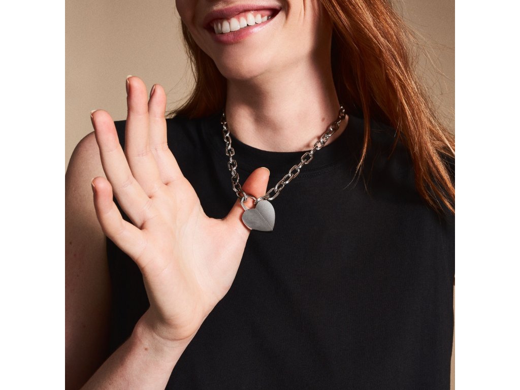 Dámsky náhrdelník s odvážnym charakterom a symbolom nehynúcej lásky. Ide o šperk, ktorý obsahujekombinuje surovosť reťaze a jemnosť srdcového ornamentu, ktorý pripomína zámky na európskych mostoch. Nechajte sa očariť podmanivým šperkom s moderným dizajnom!