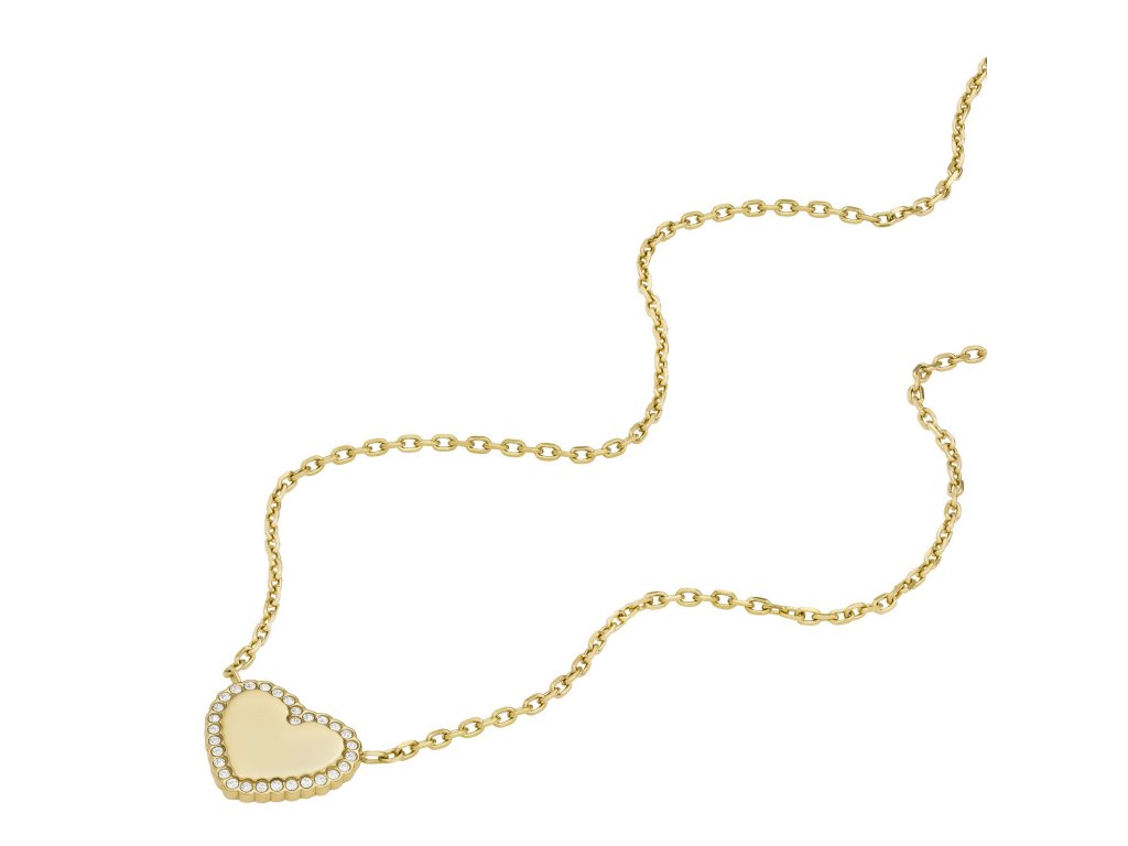 Dámsky náhrdelník Fossil Elliot je šperk, ktorý očarí svojím jemným a romantickým vzhľadom.Prívesok v tvare srdca s čírymi kryštálmi dodáva náhrdelníku výrazný lesk a pôvab, ktorý dokonale zvýrazní vašu ženskosť.