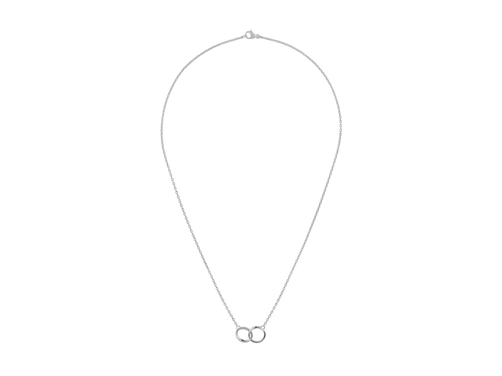 Strieborný náhrdelník s dvoma spojenými krúžkami osadenými bielymi kryštálmi