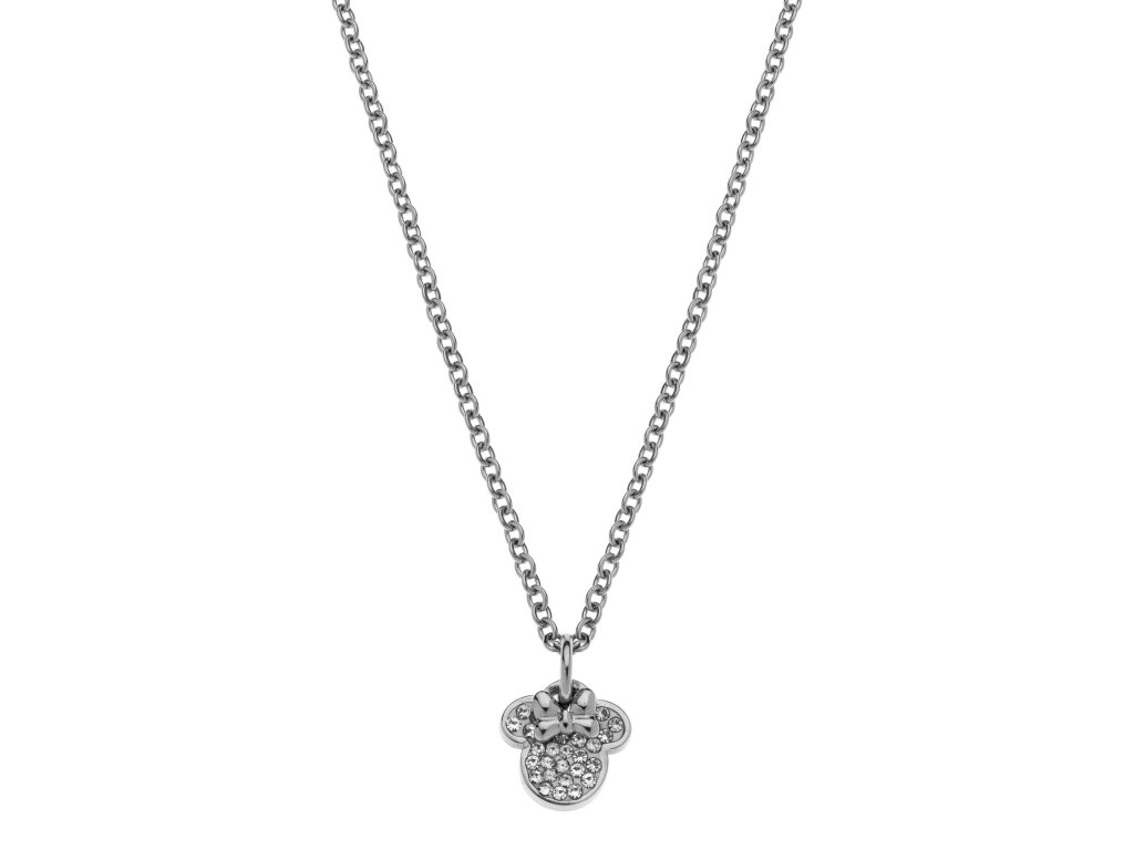 Náhrdelník s príveskom v tvare hlavy myšky Minnie od Disneyje vyrobený z nehrdzavejúcej ocele s lesklým povrchom.. Miska Minnie Mouse je zdobená fuksiovými kryštálmi, ktoré šperku dodávajú mimoriadny šmrnc. Maximálna dĺžka retiazky je 40 cm. Dodáva sa v štýlovej krabičke.