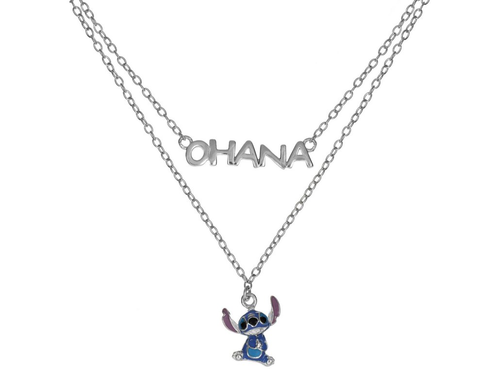 Náhrdelník je vyrobený zdve jemné retiazky z kvalitného striebra 925/1000.Dlhšia retiazka s roztomilým príveskom Stitch, kratšia retiazka má strieborný nápis "OHANA"pripomínajúc nám, že rodina je vždy na prvom mieste a nikto nezostáva sám.