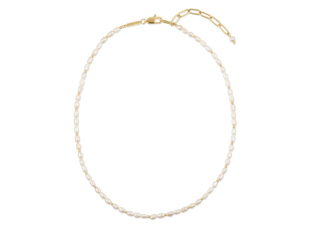 Elegantné dámske šperky Esprit Shelly sú veľmijednoduché, ale vkusné. Náhrdelník sa postará o sofistikovanosť celého vášho outfitu a dodá mu romantický nádych. Kombinuje svetlénepravidelné podlhovasté perly s lesklou pozlátenou nehrdzavejúcou oceľou.
