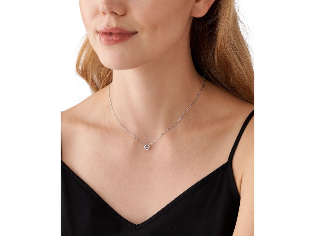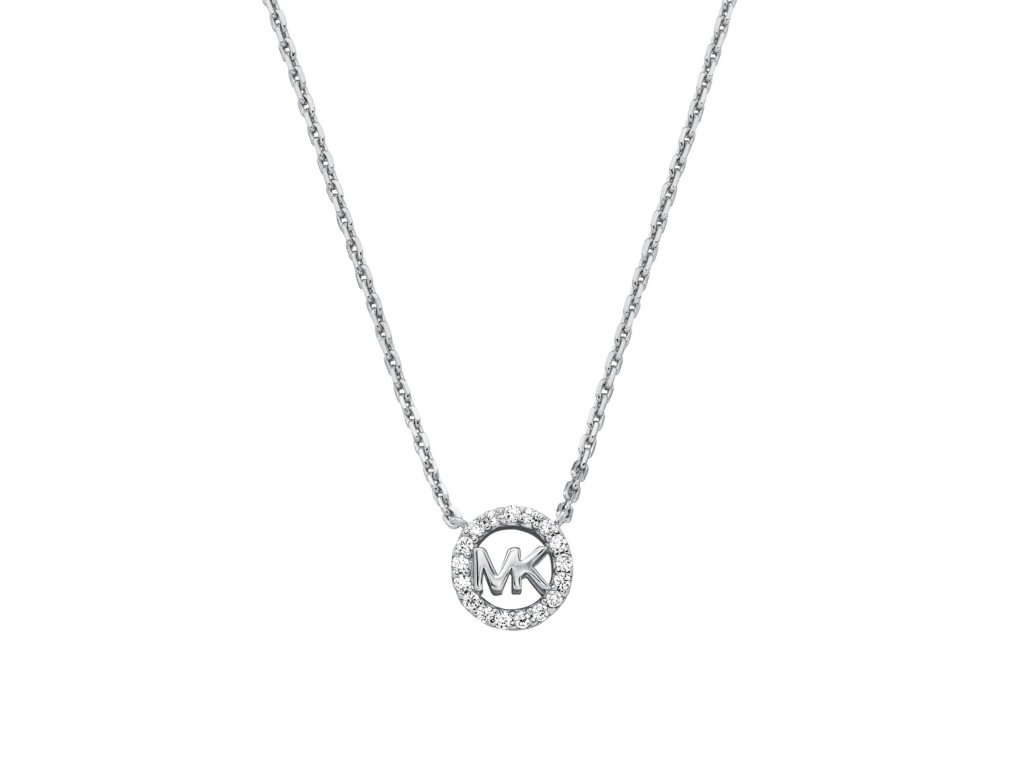 Náhrdelník je vyrobený zo striebra. Náhrdelník má atraktívny dizajn a je korunovaný logom MK, ktoré je po obvode zdobené trblietavými zirkónmi.Lesk striebra a kryštálov robí z náhrdelníka luxusný doplnok, ktorý doslova vyzdvihne váš štýl. Šperk je vyrobený zo striebra 925 a váži 2 g.