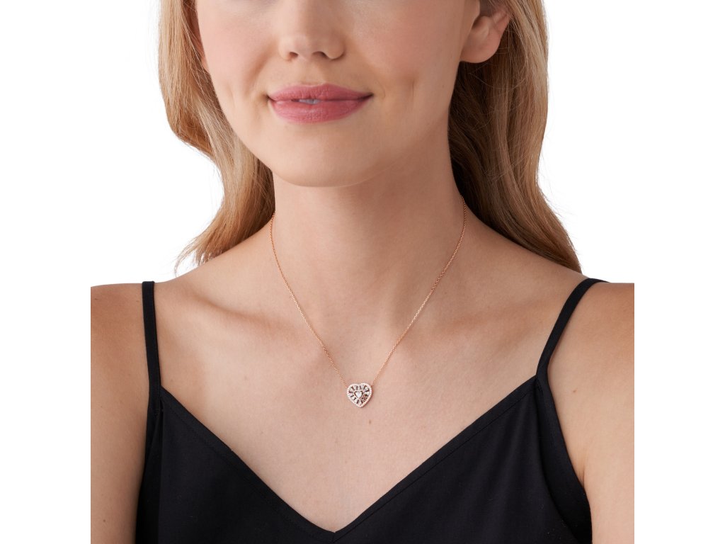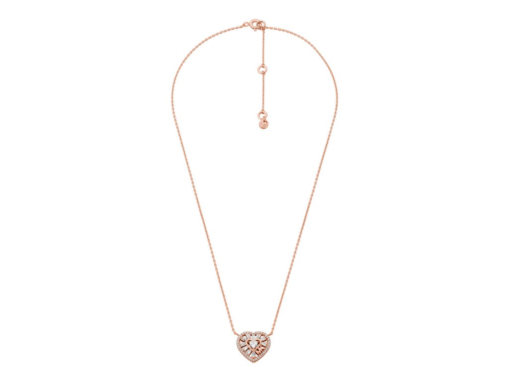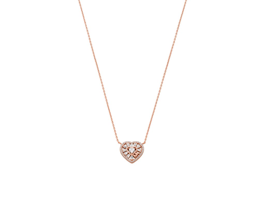 Elegantné, sofistikované a mimoriadne ženskétento strieborný náhrdelník v ružovom zlate od Michaela Korsa je srdcom pre ženy, ktoré ocenia zdobené doplnky plné detailov.