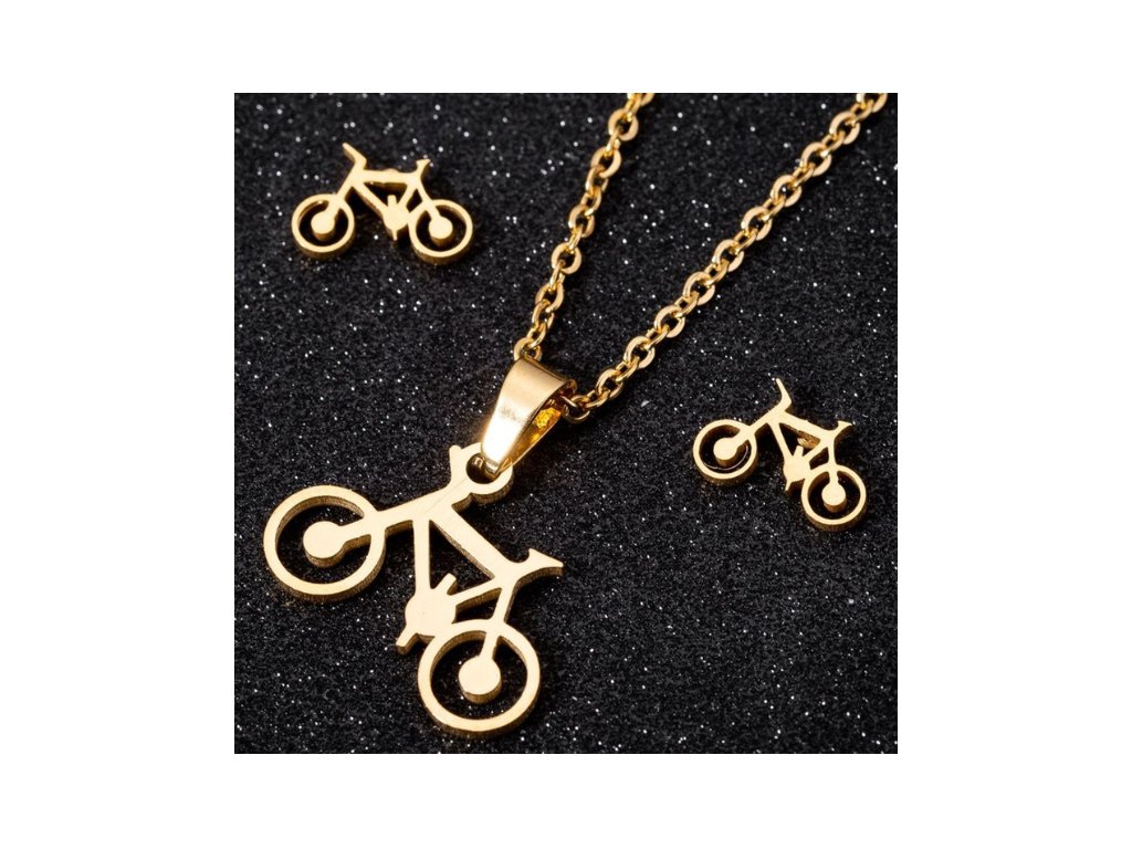Módna Súprava Retiazky s Príveskom a Náušnice Bicykel