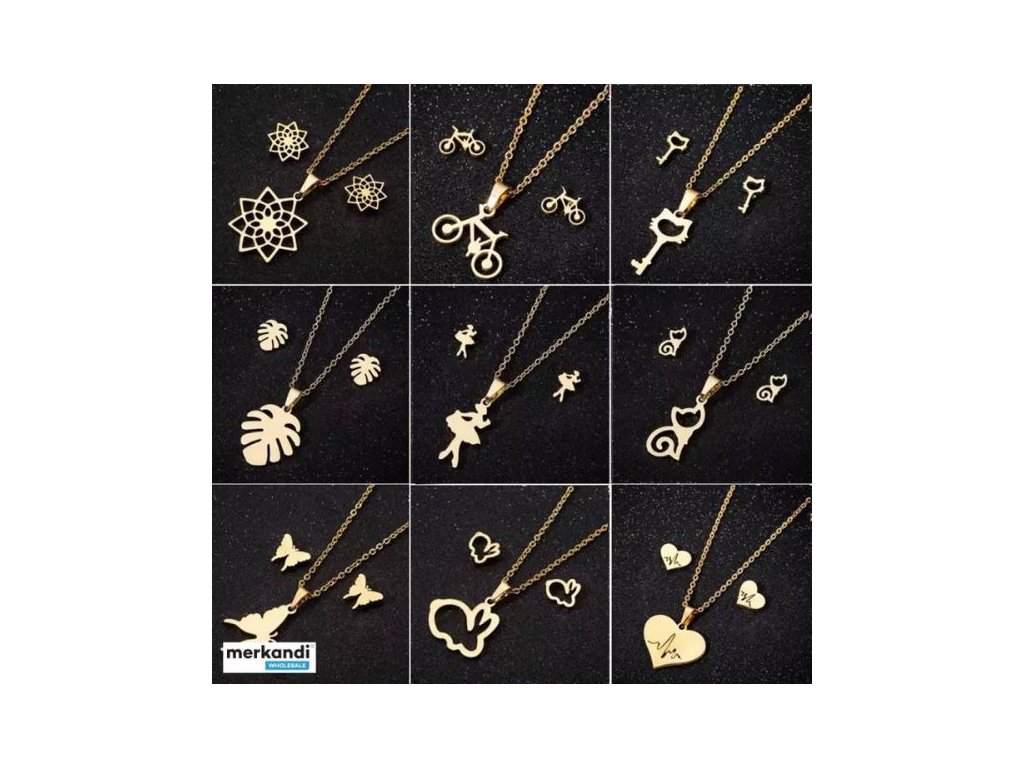 Máte doma mladú slečnu ? Došli vám nápady ako jej urobiť radosť ?? Máme pre Vás tip : Kúpte pre ňu túto súpravu , výber motívu nechám na Vás a doprajte si pohľad na rozžiarené oči mladej slečny ... ten pocit stojí za to ... Módne šperky, nehrdzavejúca oceľ, zliatina a pozlátené. 9 rôznych štýlov, vhodné pre všetky druhy ľudí: lotos/srdce/bicykel/mačka/balet/kľúč/motýľ/králik/hviezda Veľkosť: ako na obrázkoch, retiazka má dĺžku 45cm Pozor, každá sada obsahuje pozlátenú retiazku s príveskom a pár cvokov do uší a je samostatne zabalená.