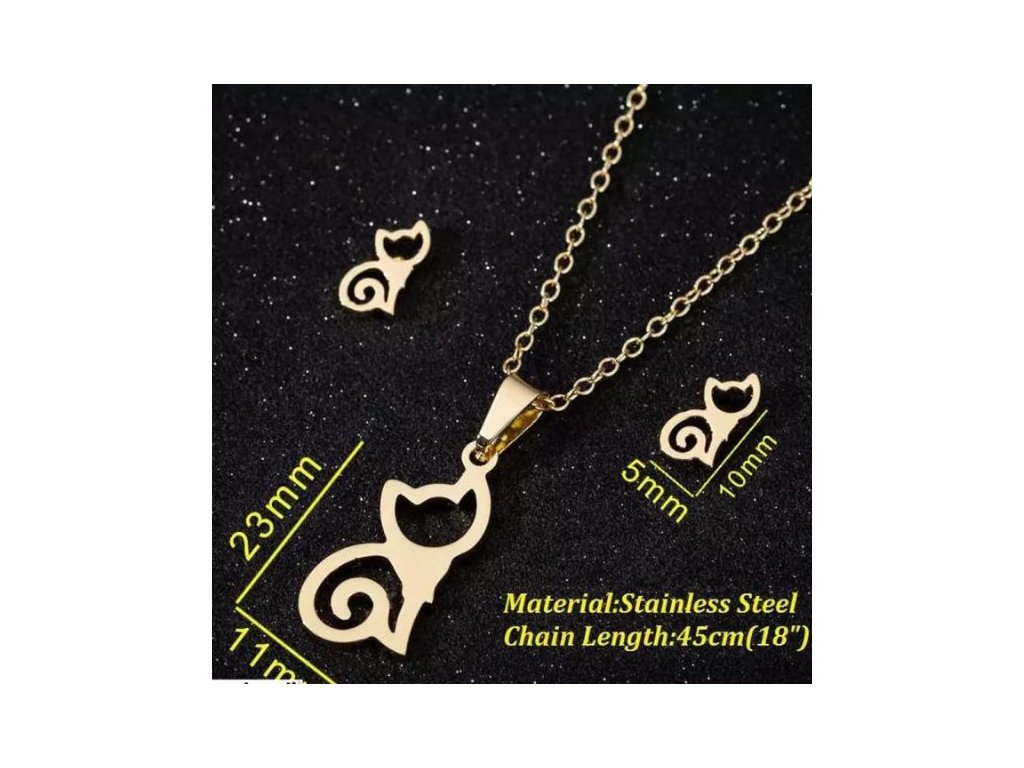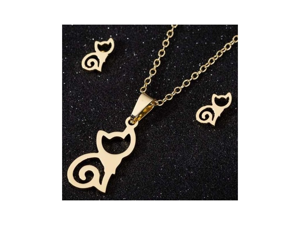 Módna Súprava Retiazky s Príveskom a Náušnice Mačka (Farba Zlatá) Kód tovaru ME963253 Farba: zlatá 3 až 5 prac. dní (5 ks) €20,25